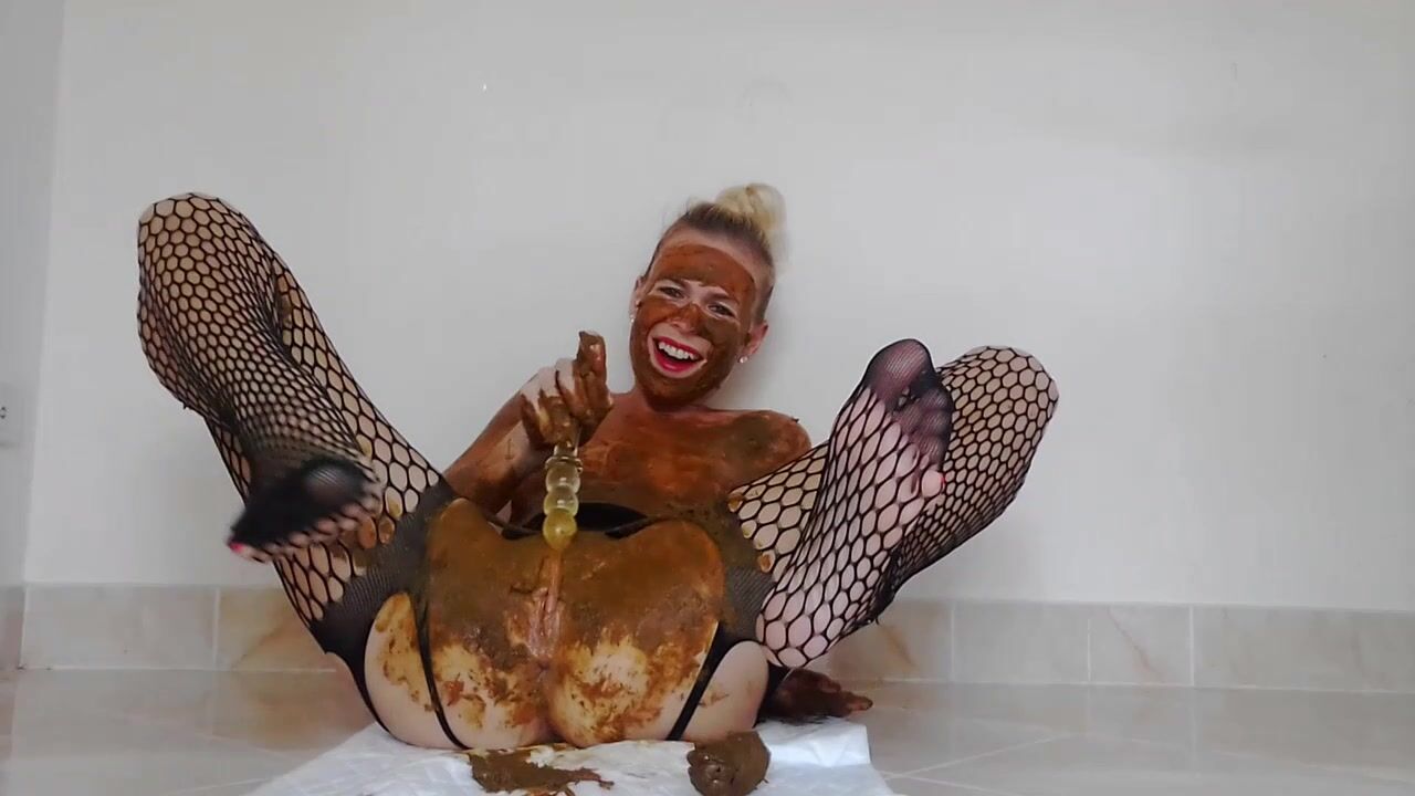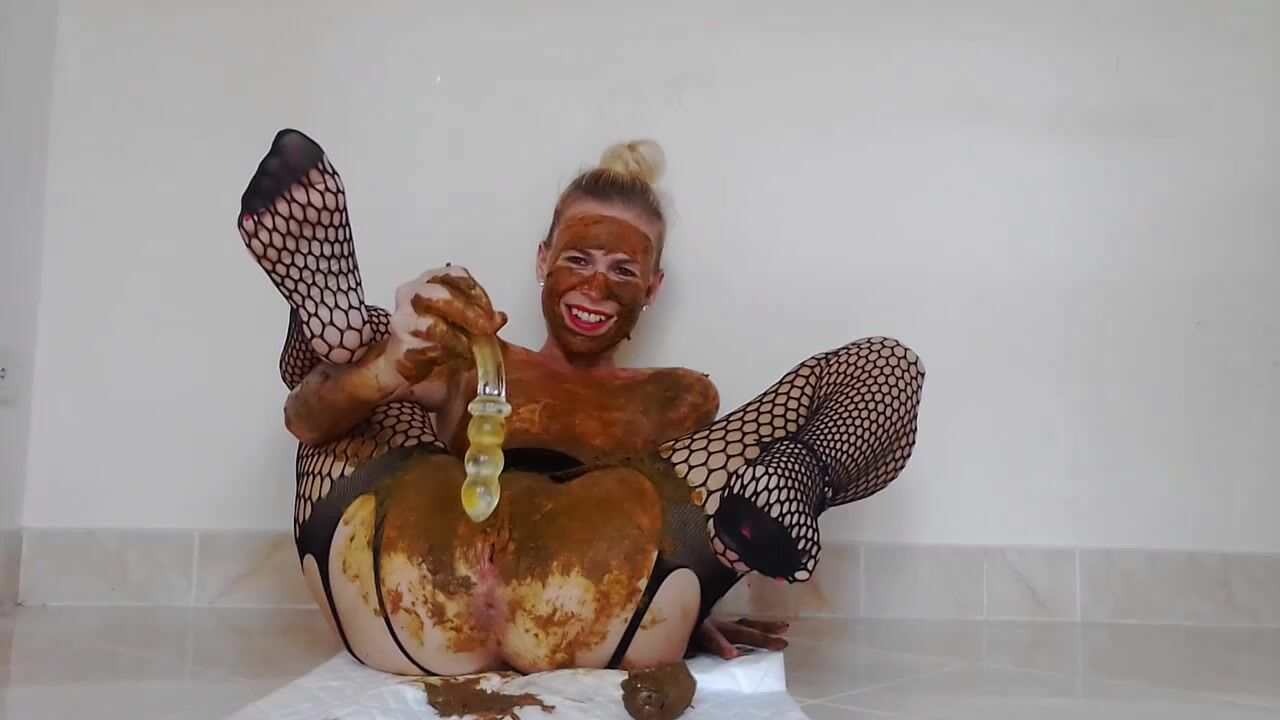 Giant Poo, Scat Pussy Play, Face Smear, Fishnets - Visit BizarroPornos.Com