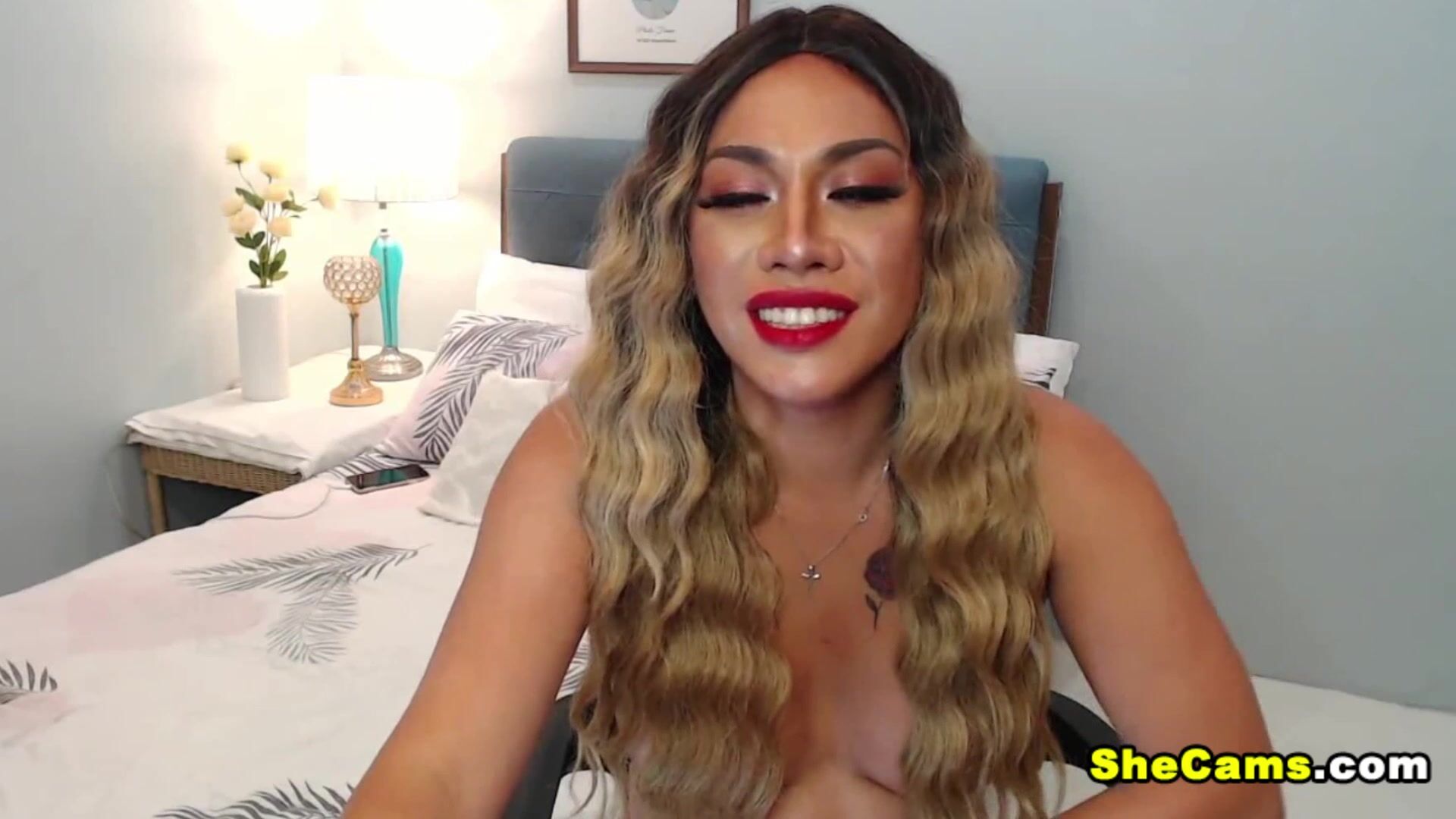 Watch her spread her legs wide in front of the cam showing her hard cock and sweet tight hole. She gets the camera to give you an up close view of her big cock that is oozing with precum She strokes it so wild making it harder and harder Prepare to have a huge boner at this hot and sexy sight. See this stunning shemale masturbating her big hard cock on cam. She gets the camera to give you an up close view of her big cock.