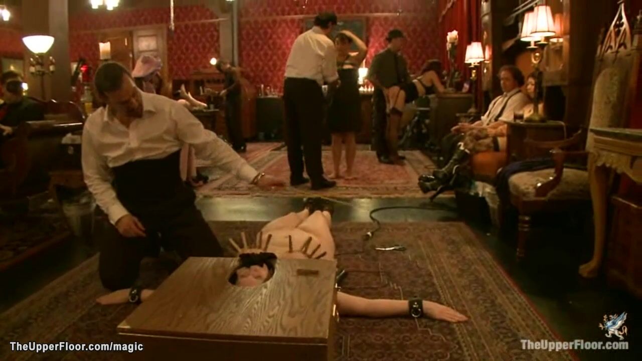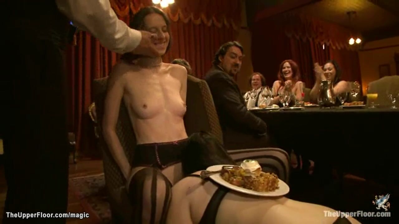 At bdsm party hosted by Maestro Stefanos hot submissive service slaves led by Nerine Mechanique are rough tormented for horny guests in the Upper Floor