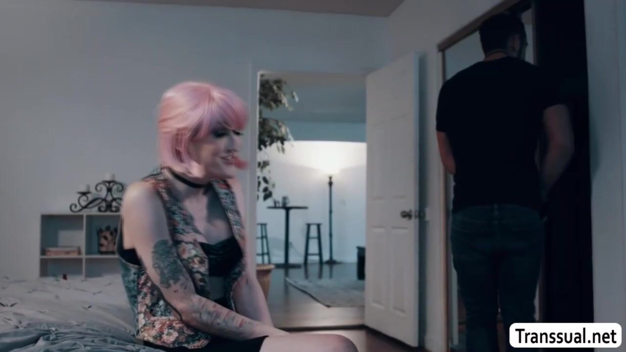 Busty shemale lets sad stepbrother bareback her wet asshole