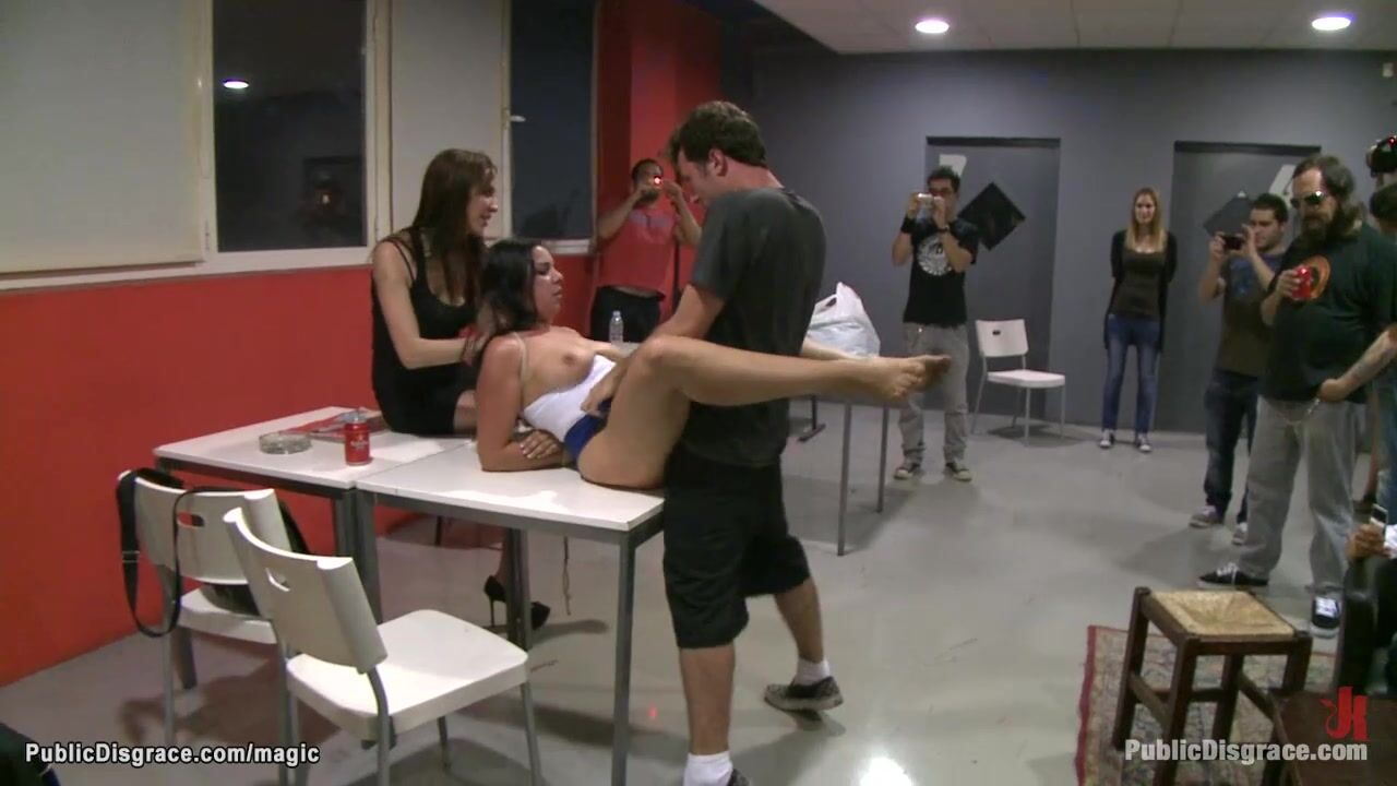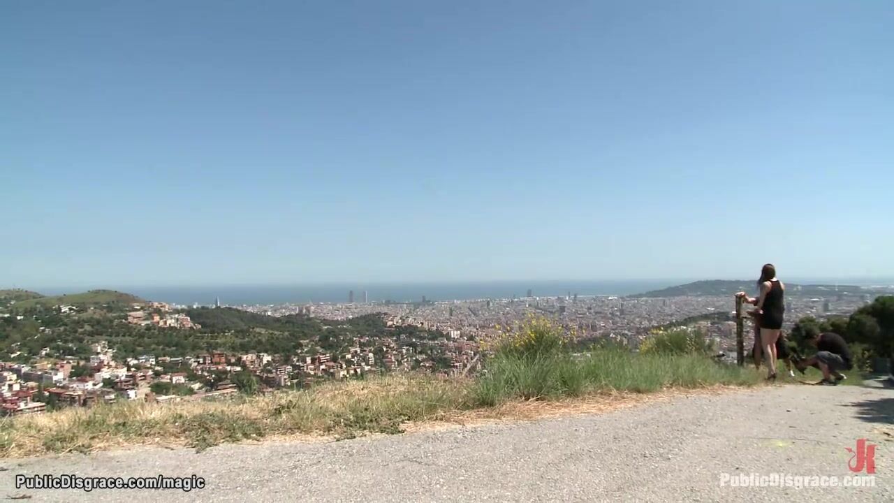 Princess Donna Dolore binds curvy Spanish babe Salma de Nora and makes her get big cock in wet pussy from James Deen outdoors in public for onlookers