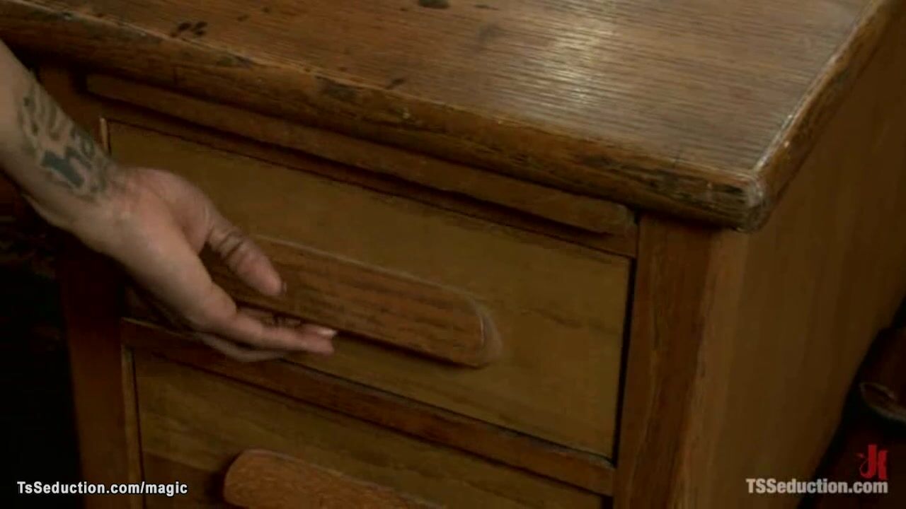 Big tits ebony shemale Natassia Dreams visits her girlfriends lover Alex Shoots in his office and handcuffs and anal fucks him with bbc till cums in his drawer