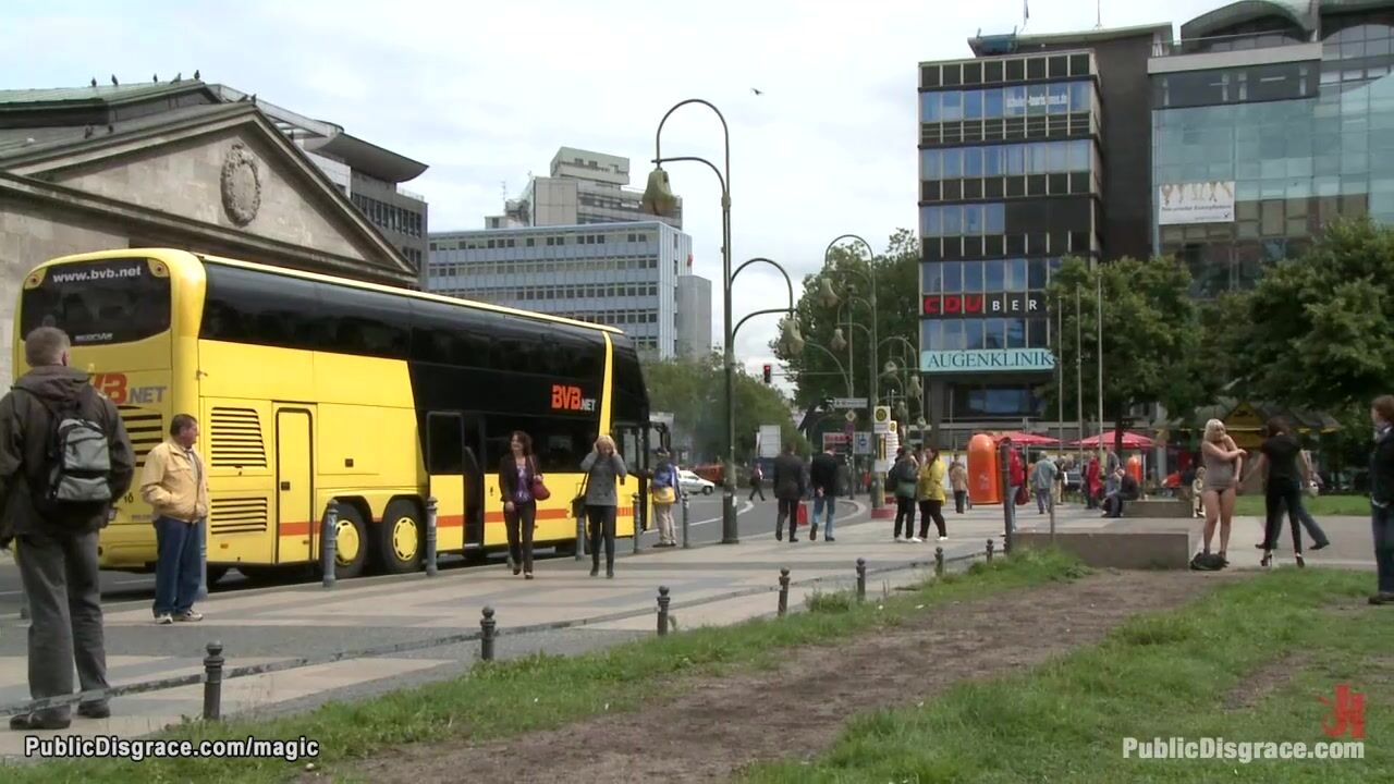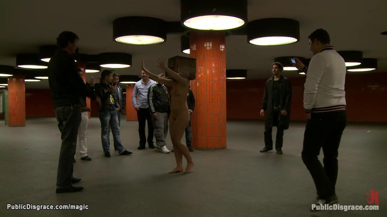 German blonde slut Uma Masome gets spanked by Princess Donna Dolore in public then head boxed and fucked by big cock Steve Holmes in subway till group fucked at night outdoors