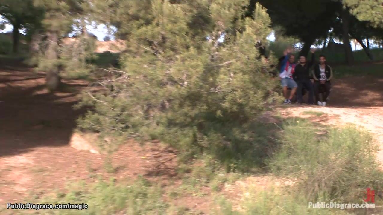 European teen Dulce Mariposa is bound in public streets and whipped by master James Deen then in the park anal gang bang fucked by big dicks