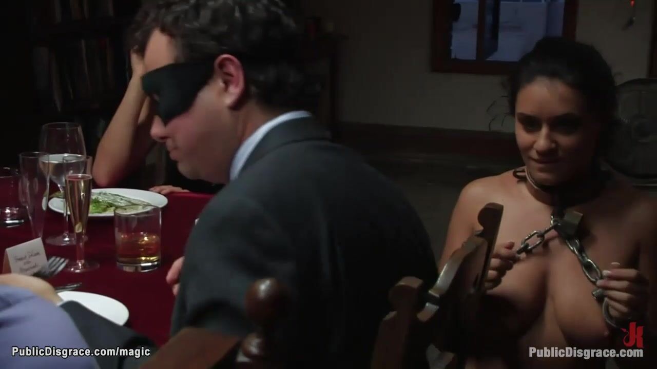 Big tits brunette babe Charley Chase is bound and laid on dinning table by host Princess Donna Dolore then bbc fucked at public party