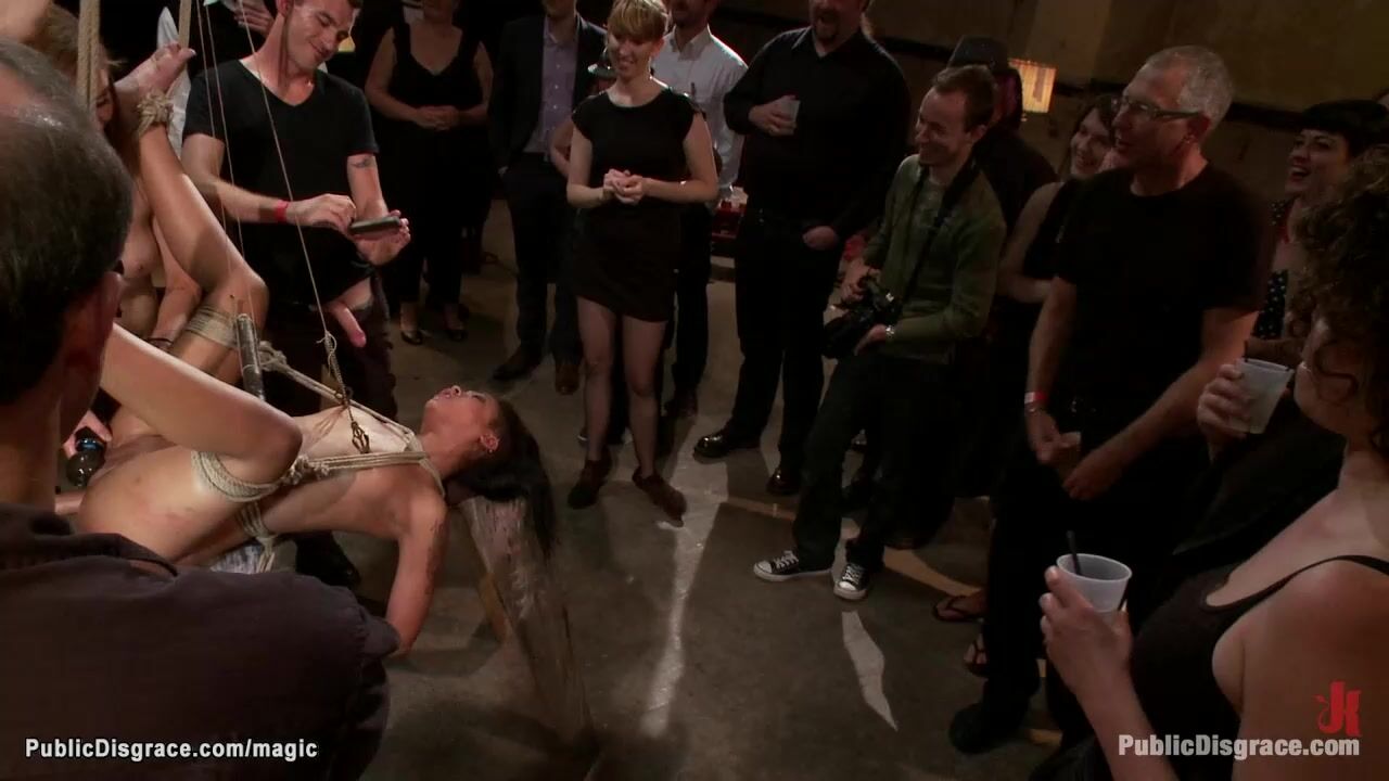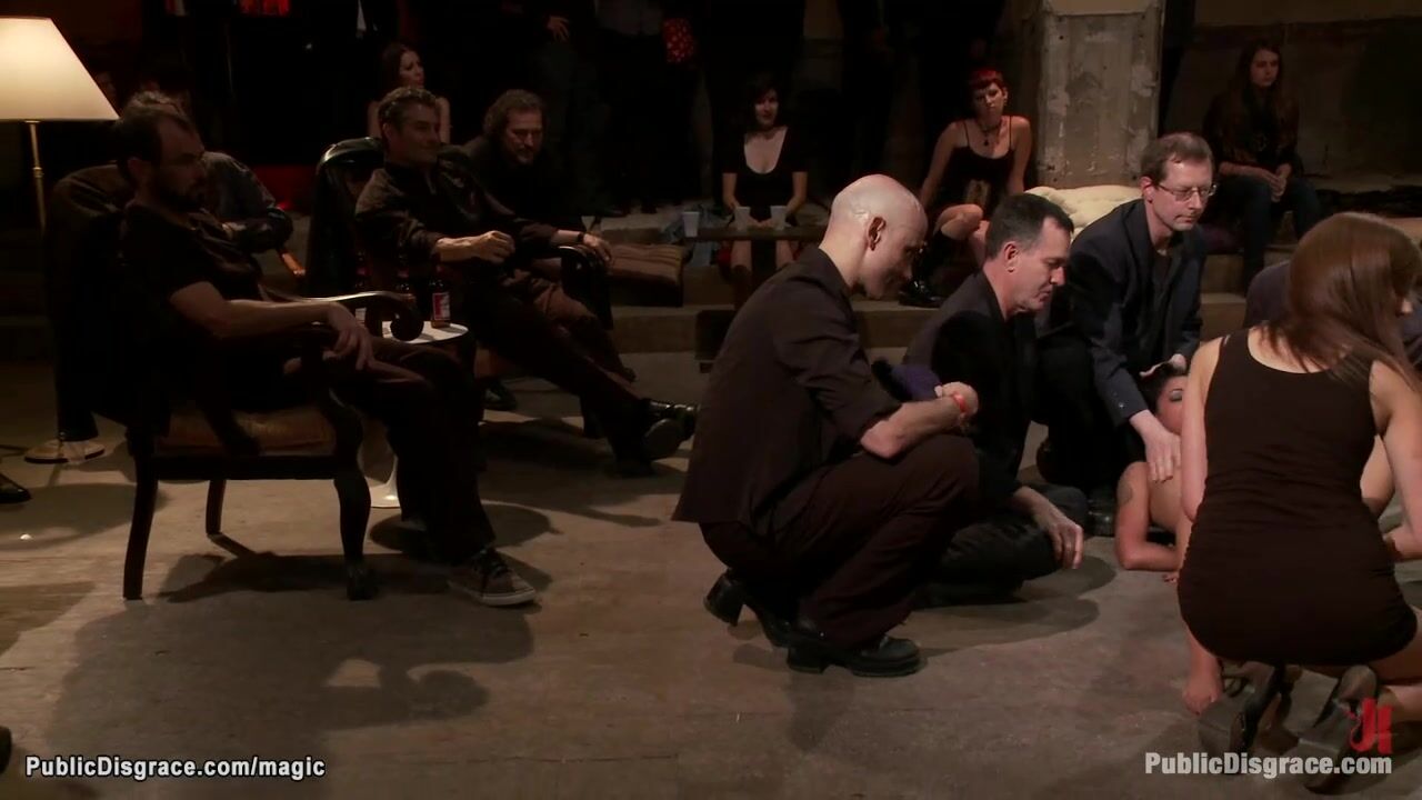 Super hot ebony slave Skin Diamond gets groped and anal fucked with dildos and strap on cock then ass pounded by big cock James Deen in public