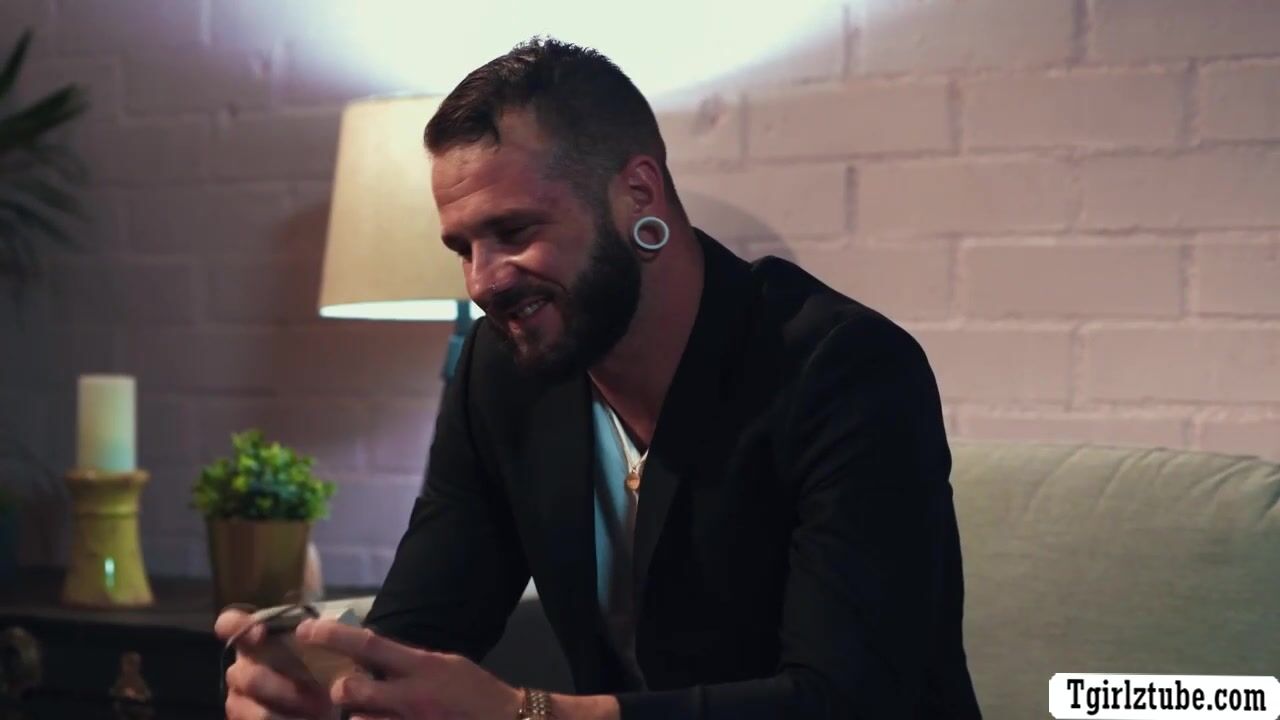 Sexy blonde Tgirl brings her boyfriend into her place and then they start stroking their big cocks on the couch.After that,she throats her boyfriends hard dick passionately and in return,the guy licks her ass first and barebacks it so hard.