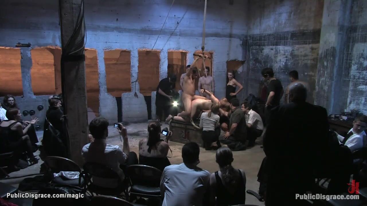 Princess Donna Dolore holds on a leash brunette slave Sarah Shevon and makes her suck big cocks then Benjamin Brat anal and pussy fucks her in public