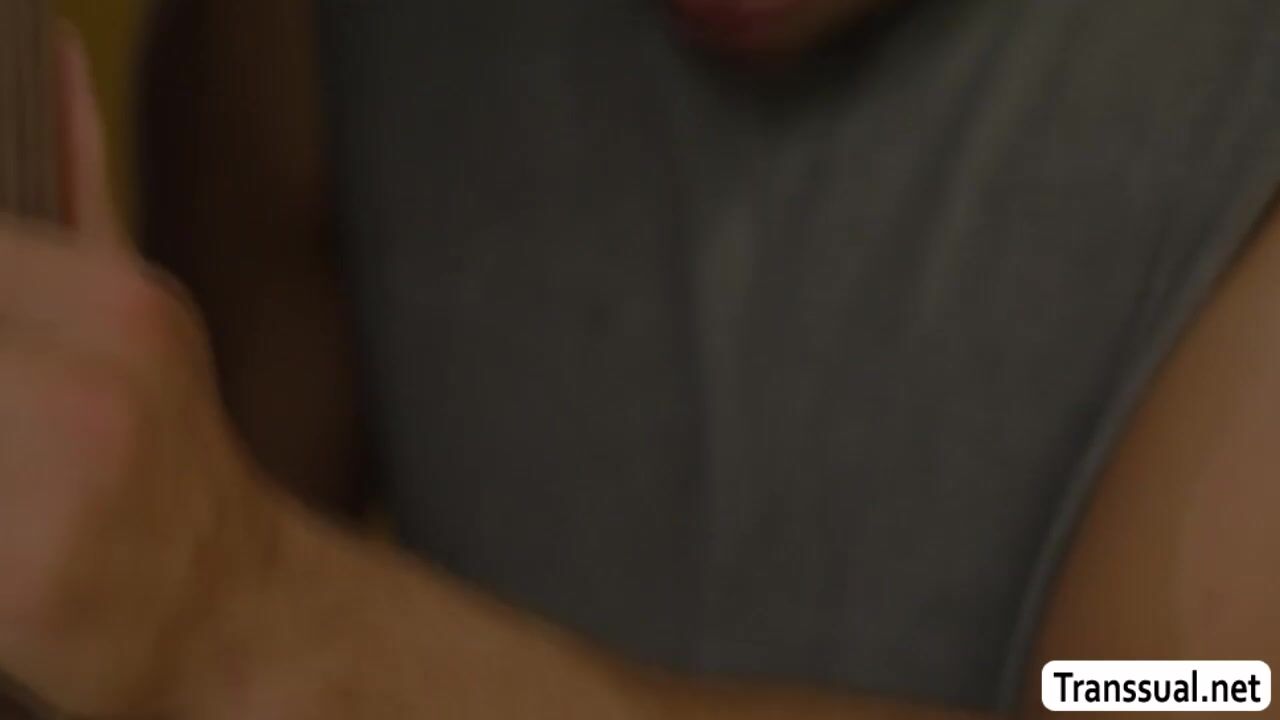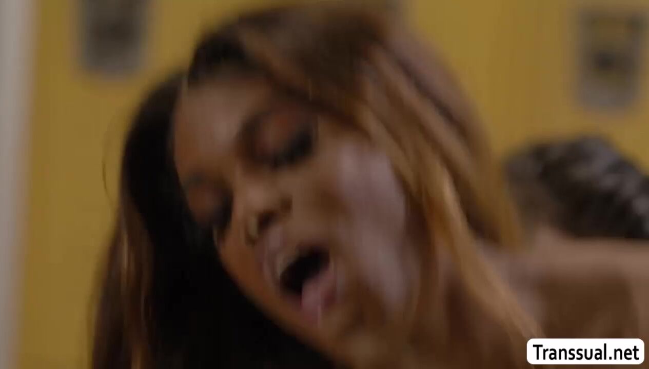 Perv dude sneak into the locker room while ebony shemale is getting naked.After that,he watches her while taking a shower.Next is,he got caught and instead of getting mad,she lets him bareback fuck her wet ass so deep and hard.