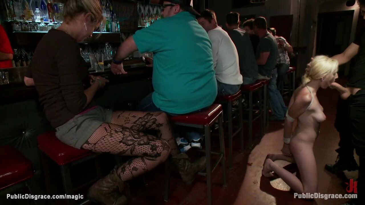 Busty blonde babe Rylie Richman gets nipples tormented on the ground in public bar then mouth and pussy fucked by big cock James Deen