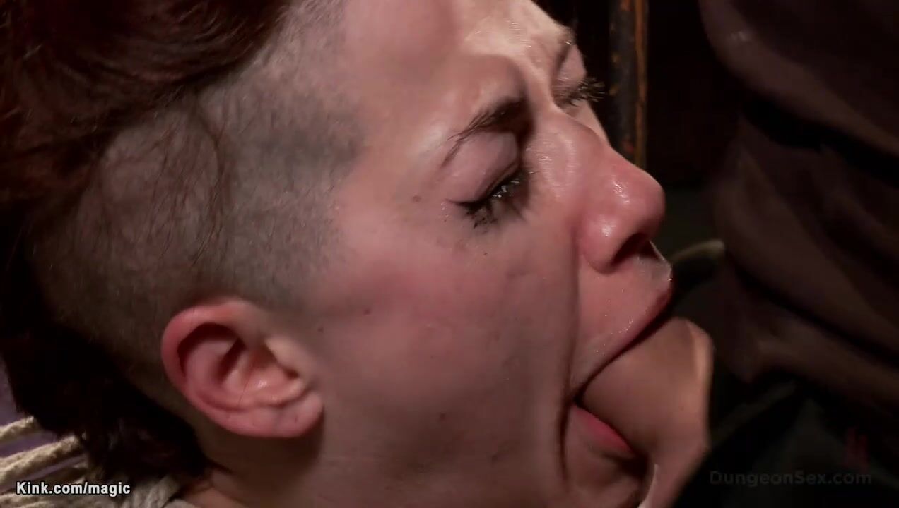 Redhead slave Ingrid Mouth down on knees bound to bed frame and mouth fucked then tight rope bound and rough anal fucked by big dick master Tommy Pistol