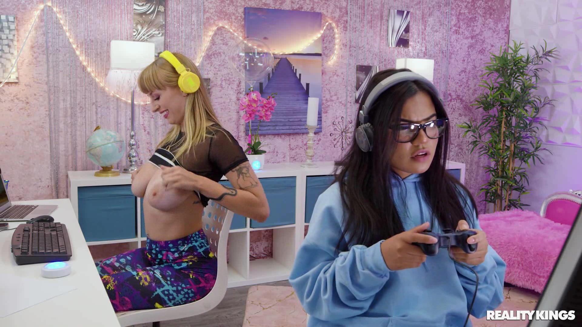 I fuck my sexy roommate while my GF playing video game