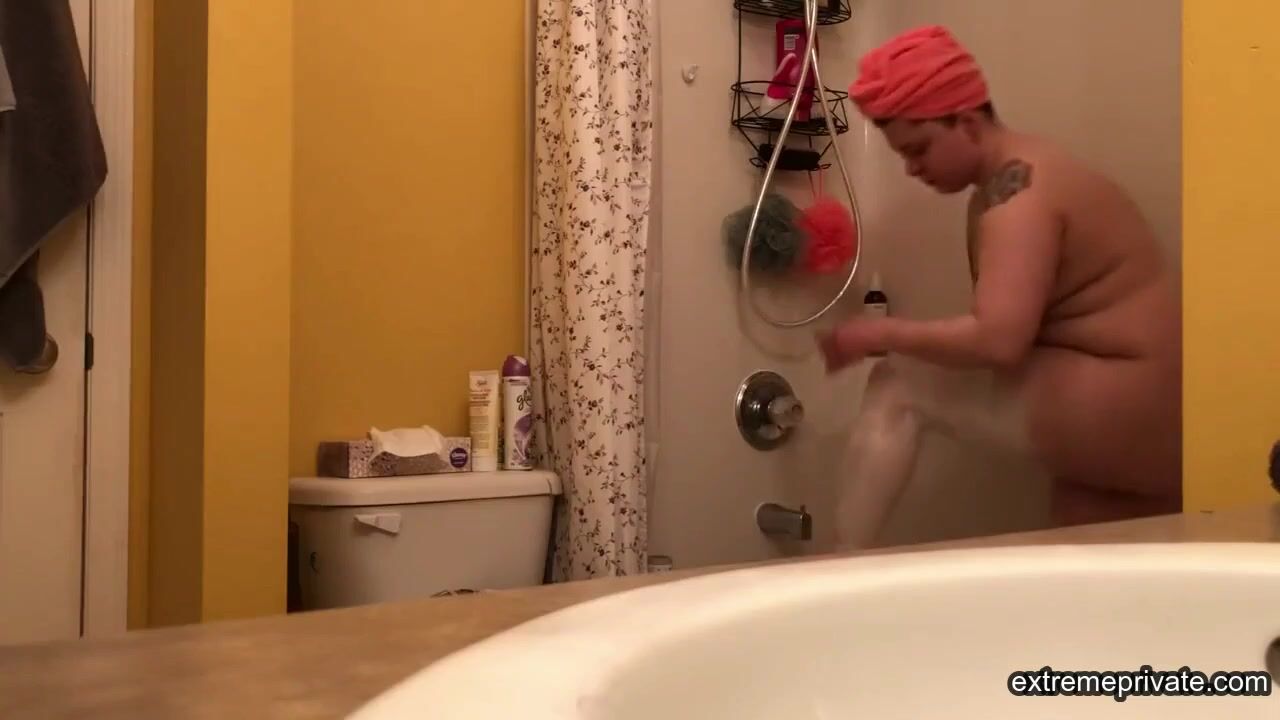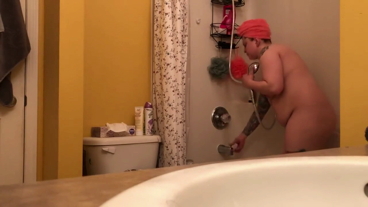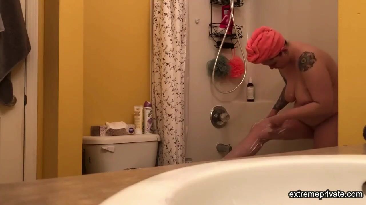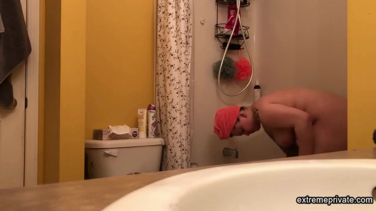 When she stays with us, I peek on her in the bathroom to enjoy her plump tattooed body while I jerk off.