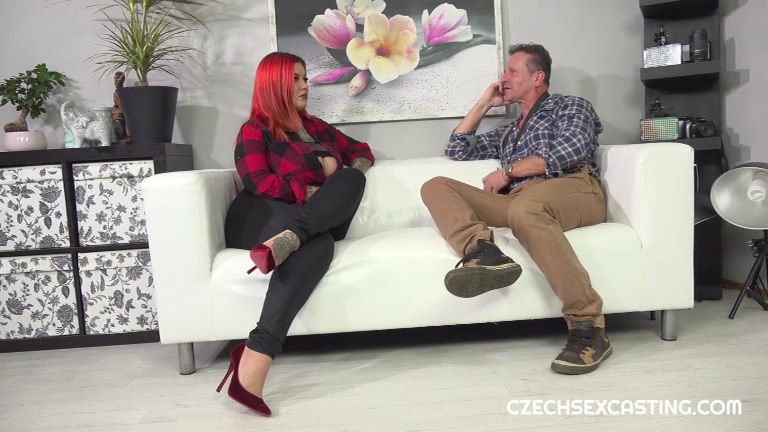 Ginger Head GF Gets Down to Her BF's Dick and Sucks It