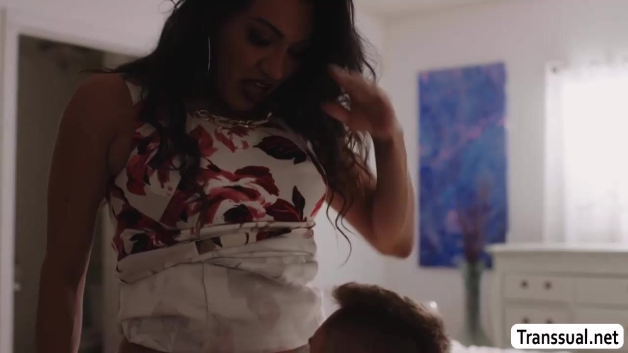 Latina Tgirl stepmom comforts her stepson because he looks so sad.She starts kissing him and she lets him suck her hard shecock passionately.In return,she licks his ass first before she bareback fucks it so deep and hard.
