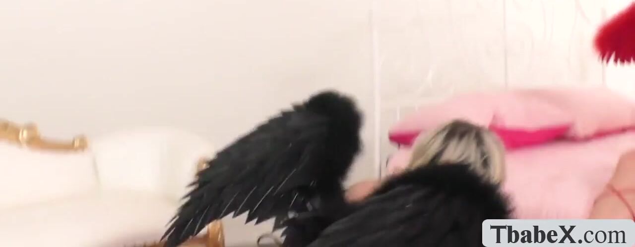 Description: Big tits blonde shemales Aubrey Kate and Lena Moon stripteases fishnet lingerie kissing passionately while stroking their big tranny cocks. The busty tbabes take turn deepthroat blowjob big tranny cocks then rimjob then big boobs Aubrey barebacks asshole of Lena.