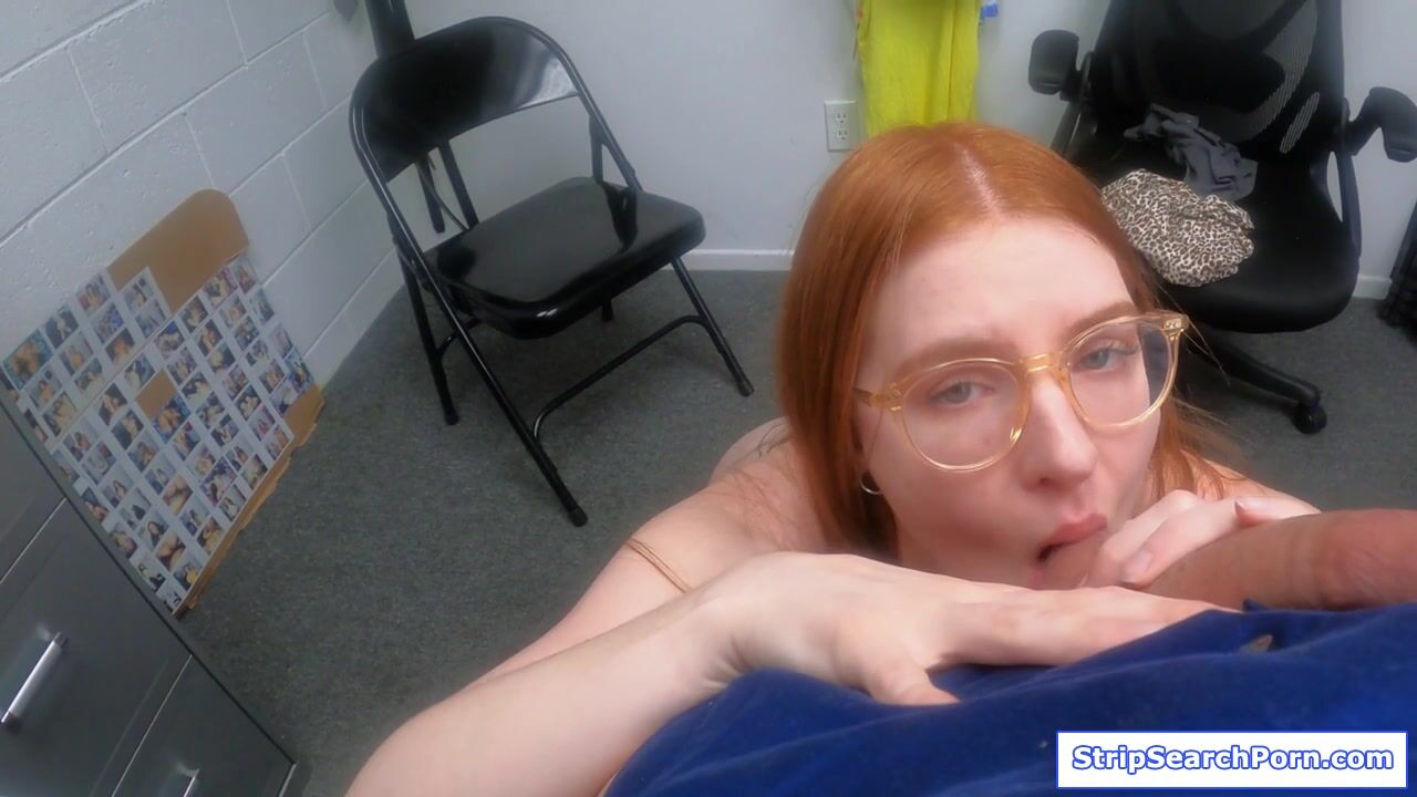 A redhead teen shoplifter gets caught stealing for the third time.The officer got curious how she avoided jail and so she shows him how.She strips naked then blowjobs his big cock.The guy fingers her hairy pussy then starts fucking her from behind.