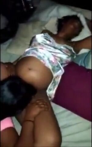 Girl with lovely ass buries her face in her girlfriend's cunt.