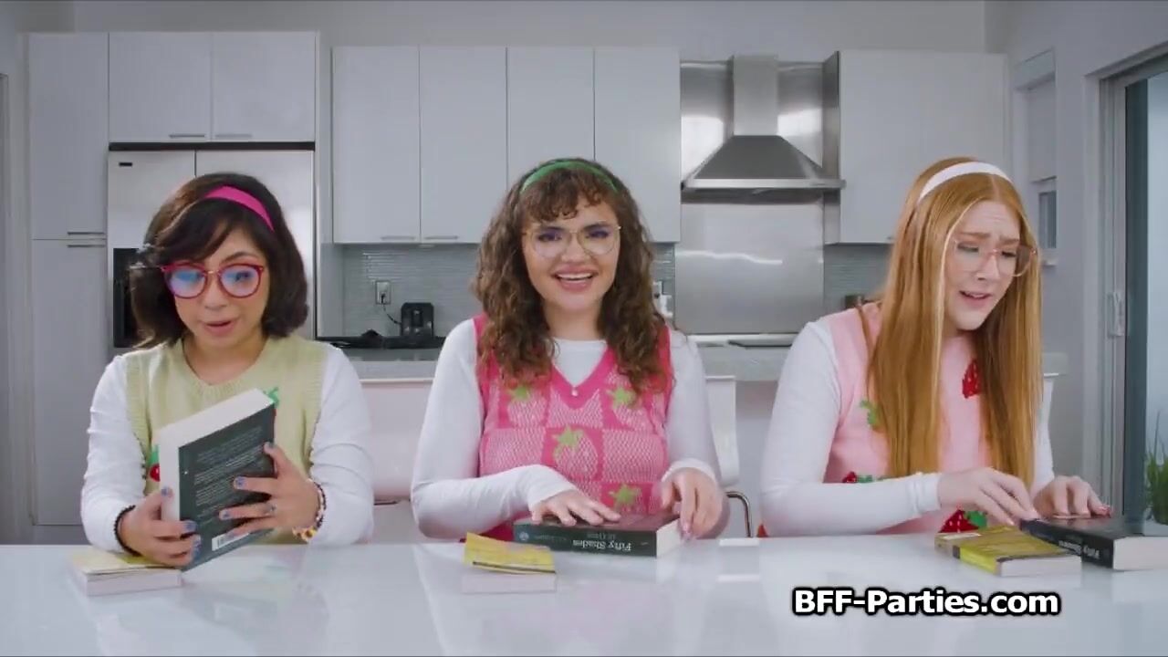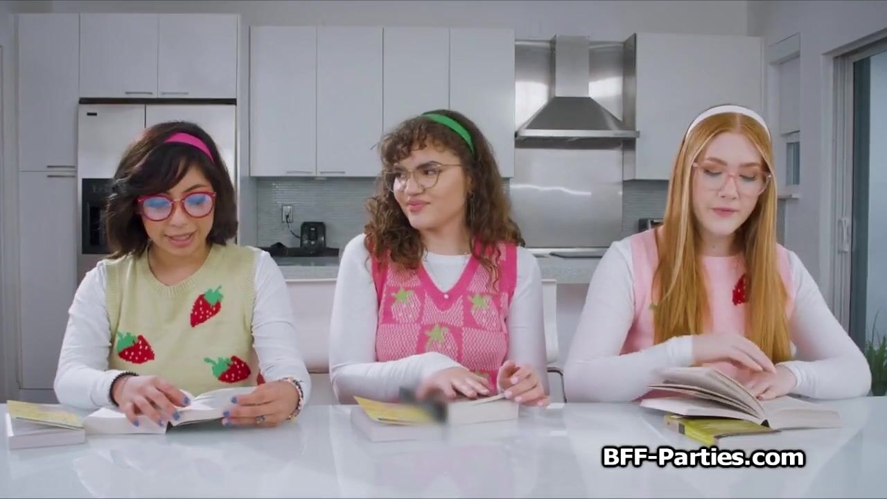 Description: These geeky girlfriends love books.. but today Nick has prepared a new one for them. Its an erotic novel and they get super horny instantly!