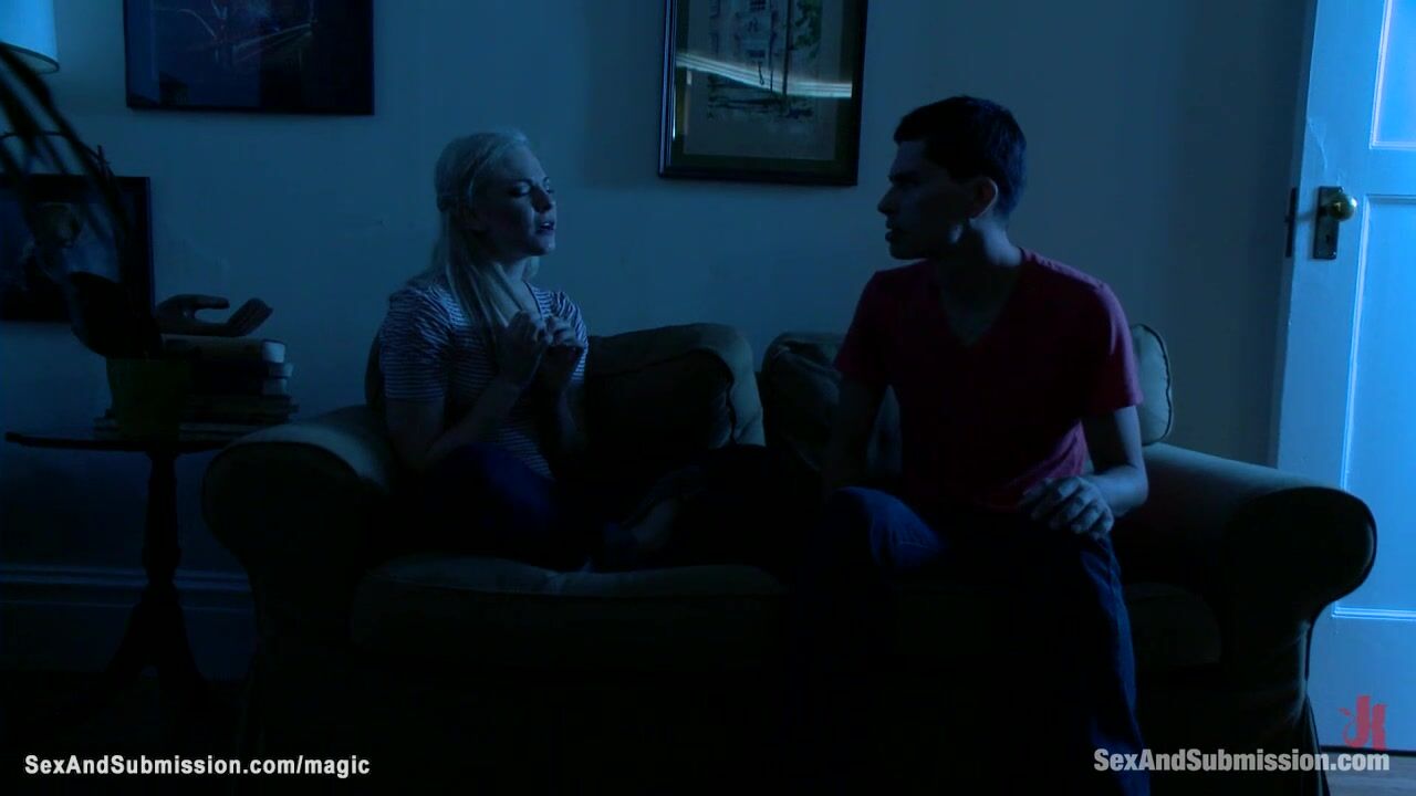 Financially struggling student Dahlia Sky gets fucked in doggy position on the floor by boss Steven St Croix then bound and blindfolded fucked in mouth and whipped