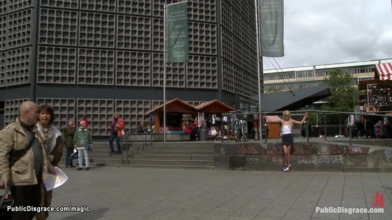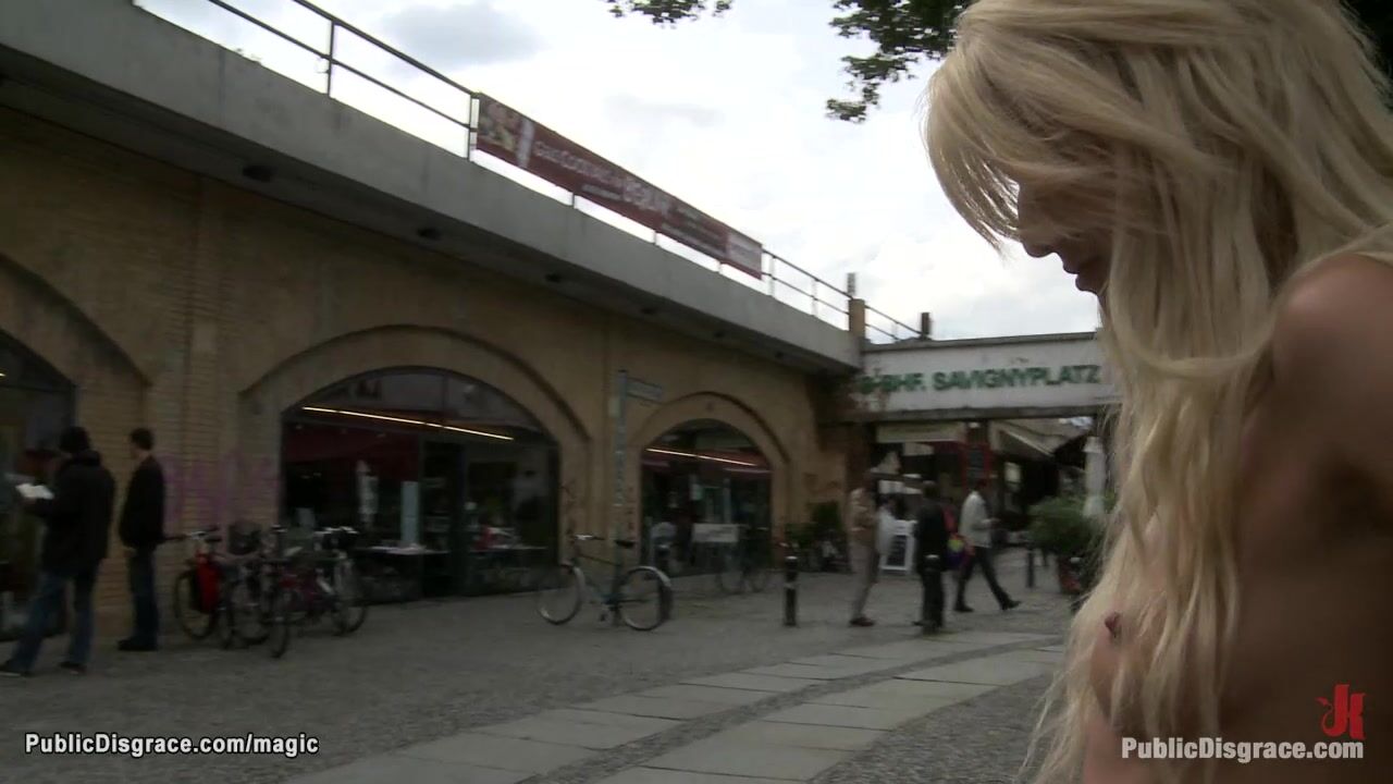Strapped arms blonde fucked in public