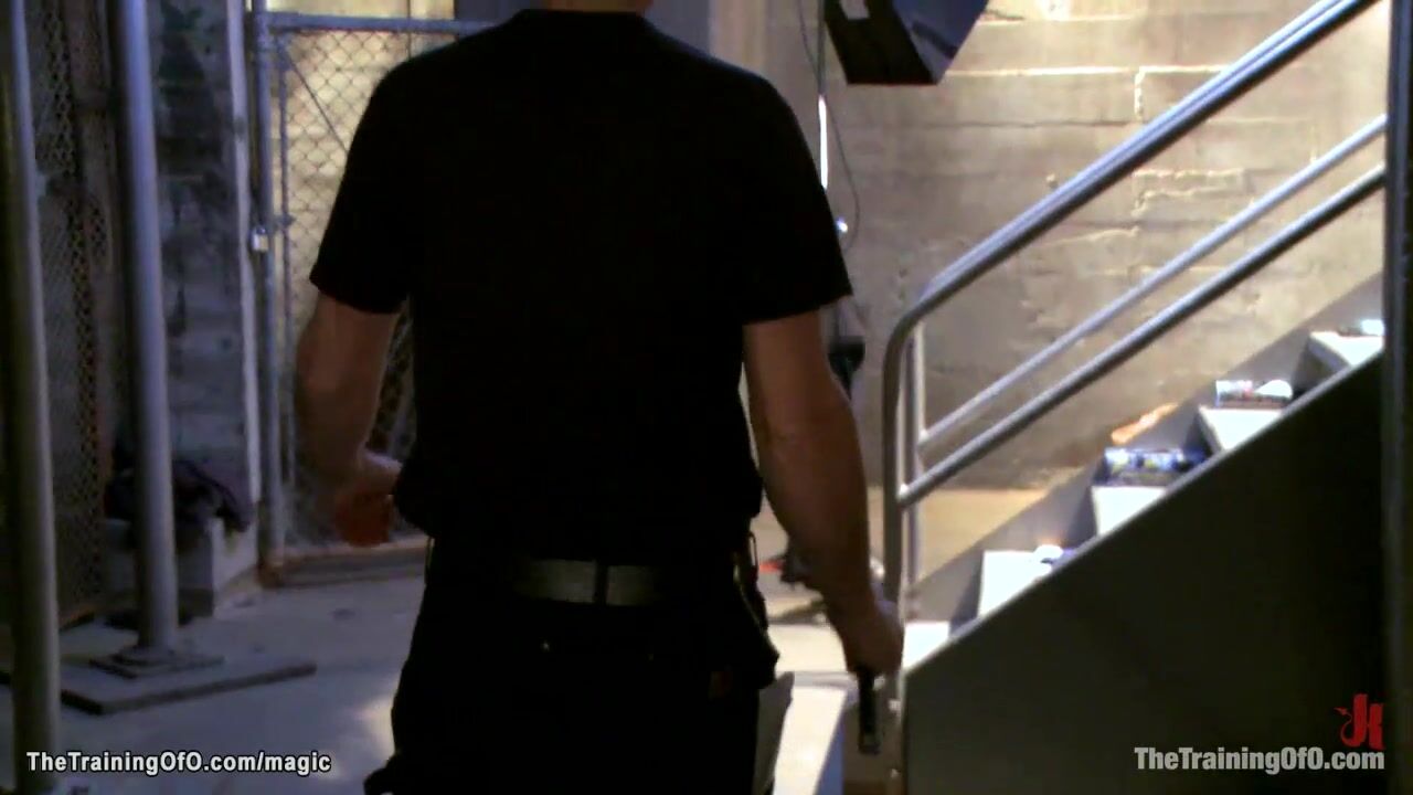 Lean small tits ebony slave trainee Nikki Darling trained by master James Mogul and made hold heavy buckets and ride vibrator and get whip