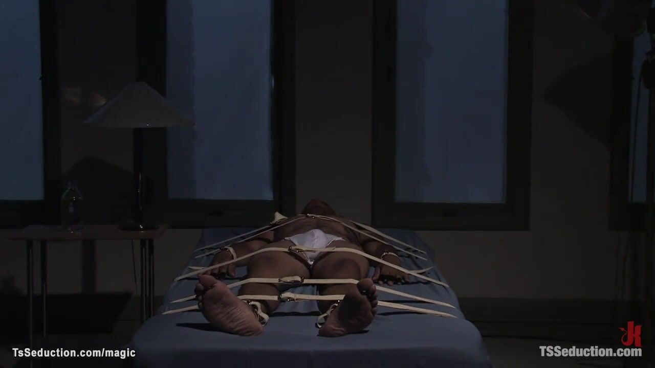 Hot big boobs mature blonde shemale doctor Johanna B straps black patient Antho in bed and fucks him with big cock in mouth then in tight ass in the hospital
