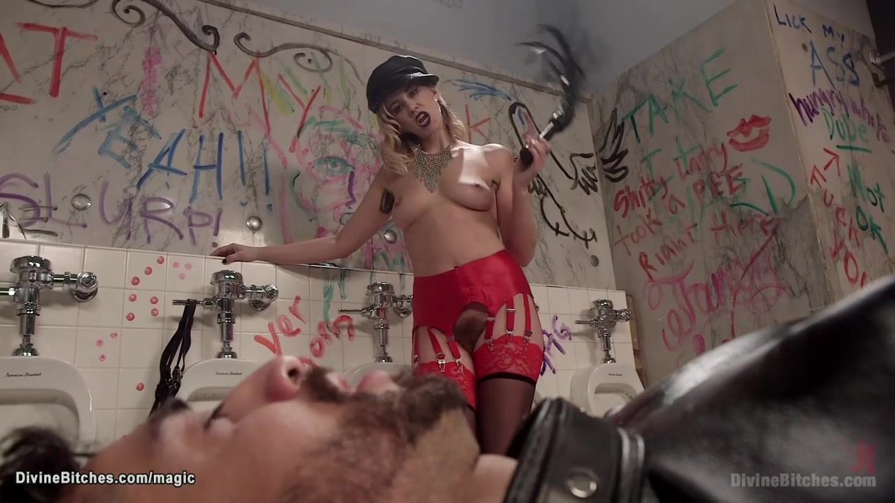 Mistress whipping man in toilet