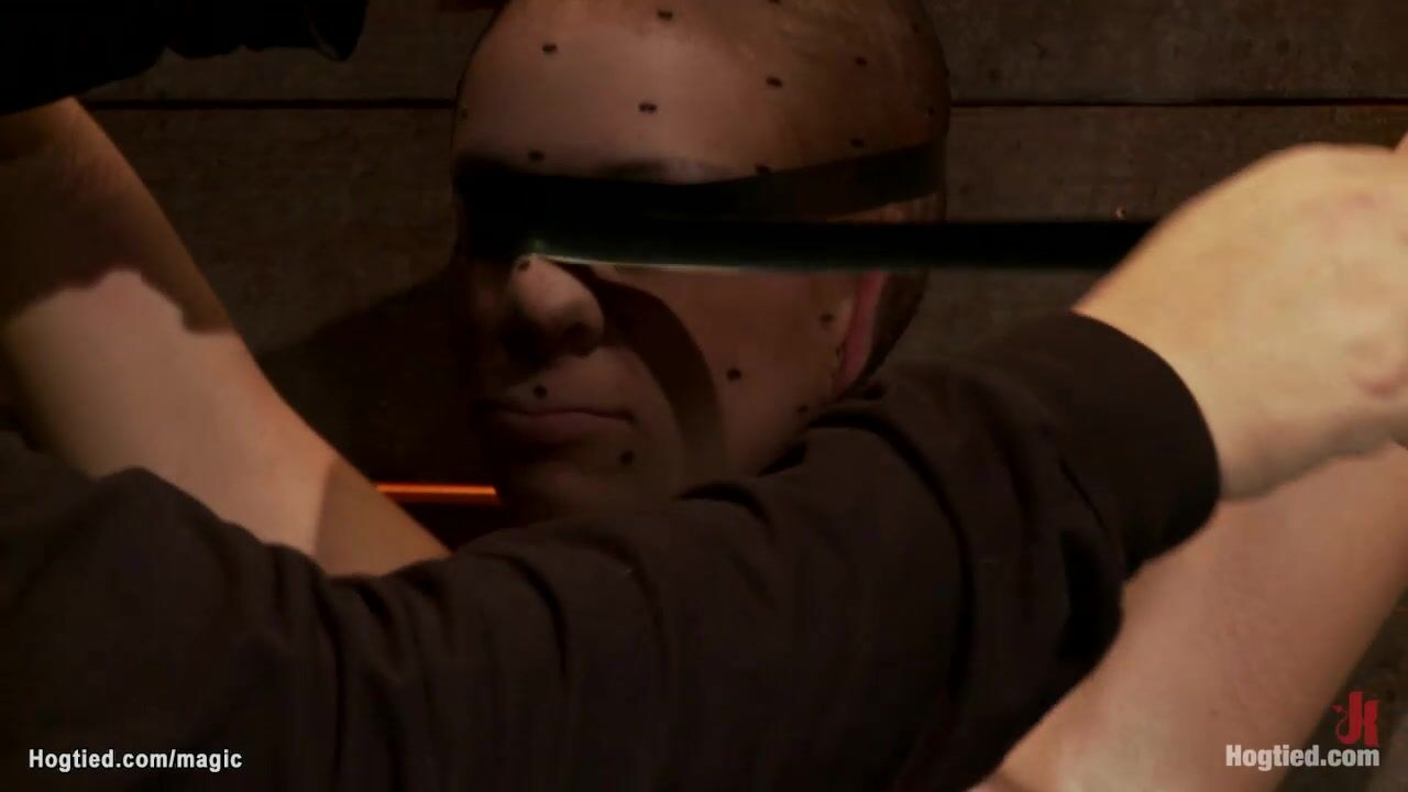 Tiny big tits blonde slave Kaylee Hilton is bound to the wooden wall in spread standing position by Matt Williams and big boobs Isis Love on hogtied