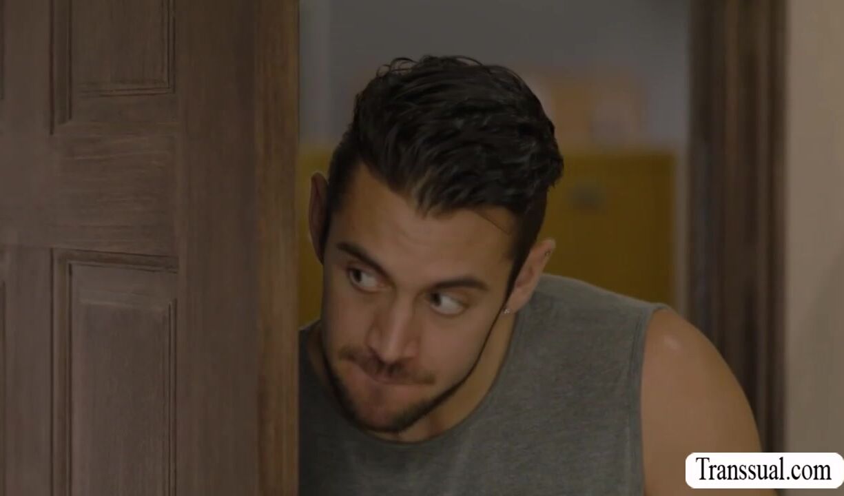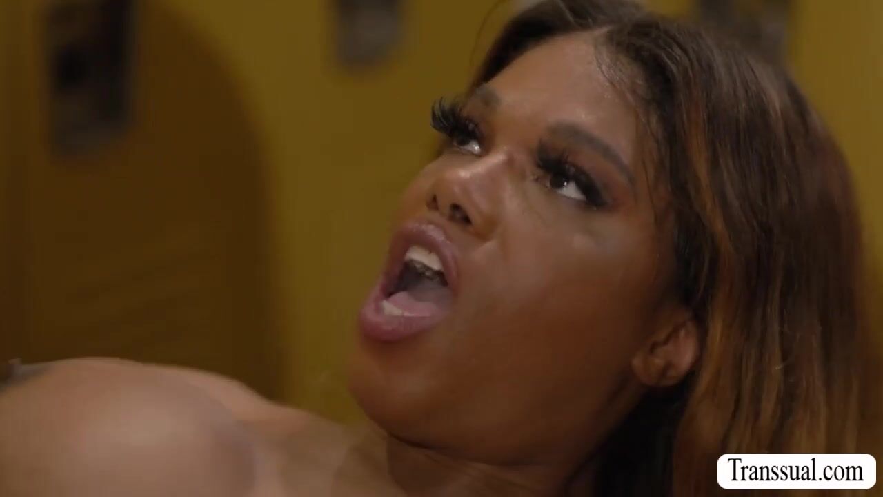 Description: Pervert dude take a peak while ebony shemale is getting naked in the locker room.After that,he watch TS ebony taking a shower and he lets her throat his hard big cock passionately.In return,he bareback fucks her tight big ass so deep and hard.