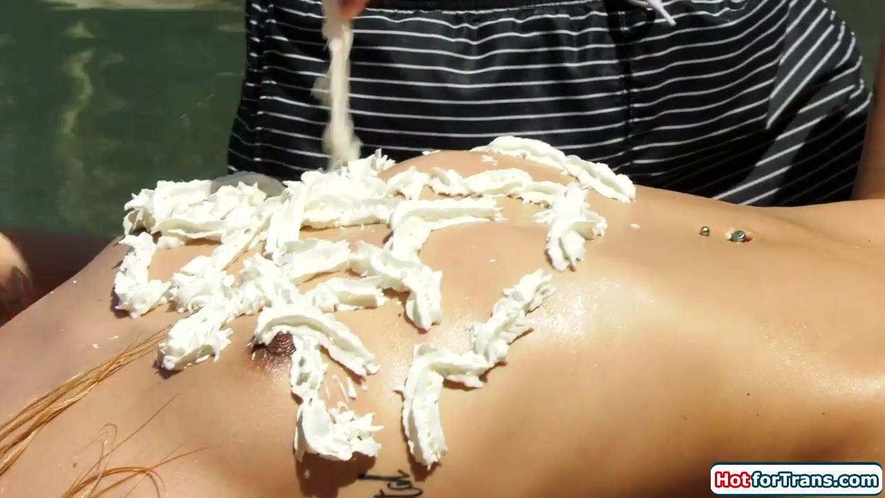 Trans Ryder Monroe gets her small boobs sucked while covered in whipped cream.The guy creams the shemales ass and rim hers.The tgirl gets her full body covered and gets her tranny dick sucked outdoors.The tattooed ts deepthroats and is anal fucked
