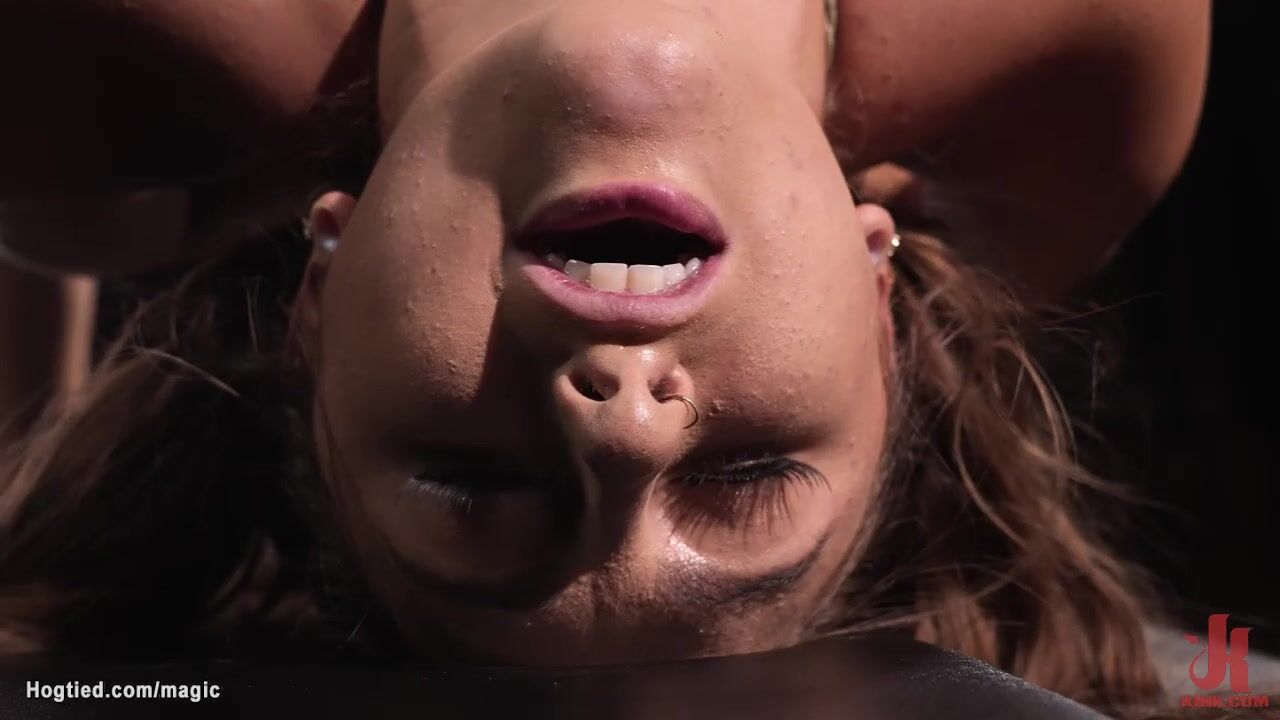 Beautiful brunette slave Penelope Kay gets big boobs bound then back arched and squirting pussy vibrated till on the floor on stomach toyed by master The Pope on hogtied