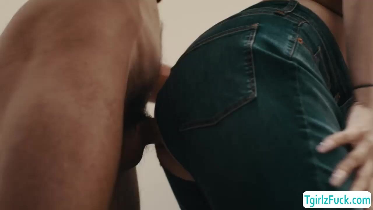 In the laundry room, busty blonde shemale Ivory Mayhem accidentally tore her pants while bending over thus Johnny B instantly anal barebacks her big ass doggystyle. In return, the big tits tbabe deepthroat blowjob his huge dick and rides it in the bathroom while masturbating.