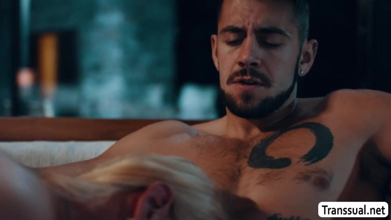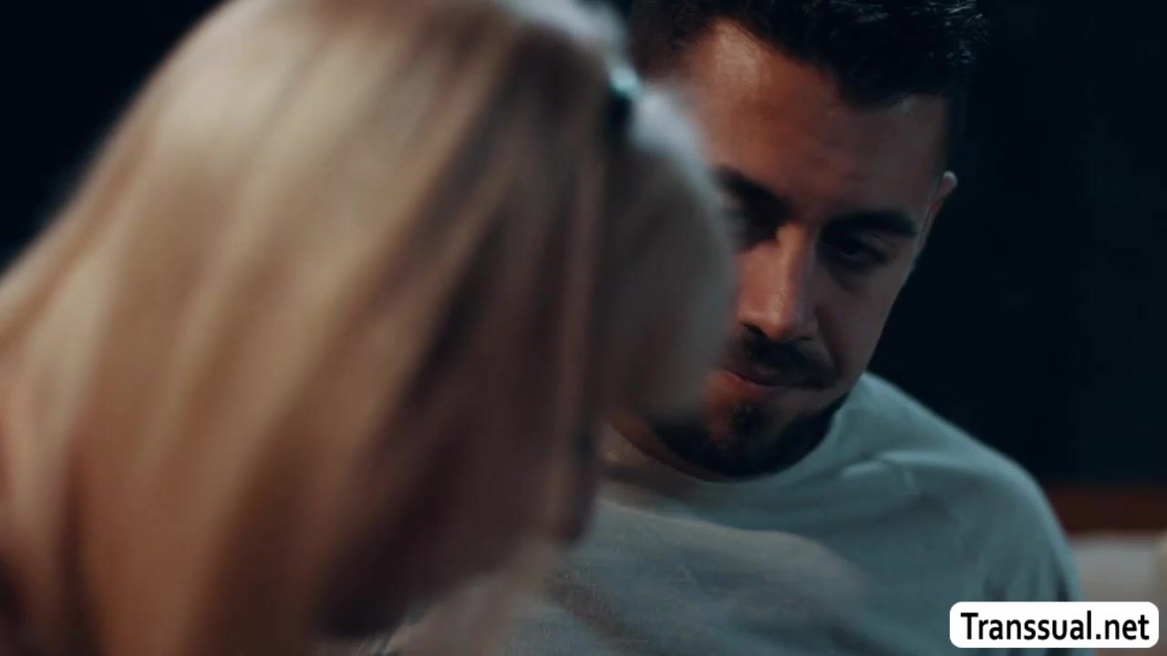 Stepson helps his shemale stepmom find her wedding ring on the couch.After they found it,they start kissing each other and then she throat the hard big cock of her stepson passionately.In return,her stepson bareback fucks her wet ass so hard.