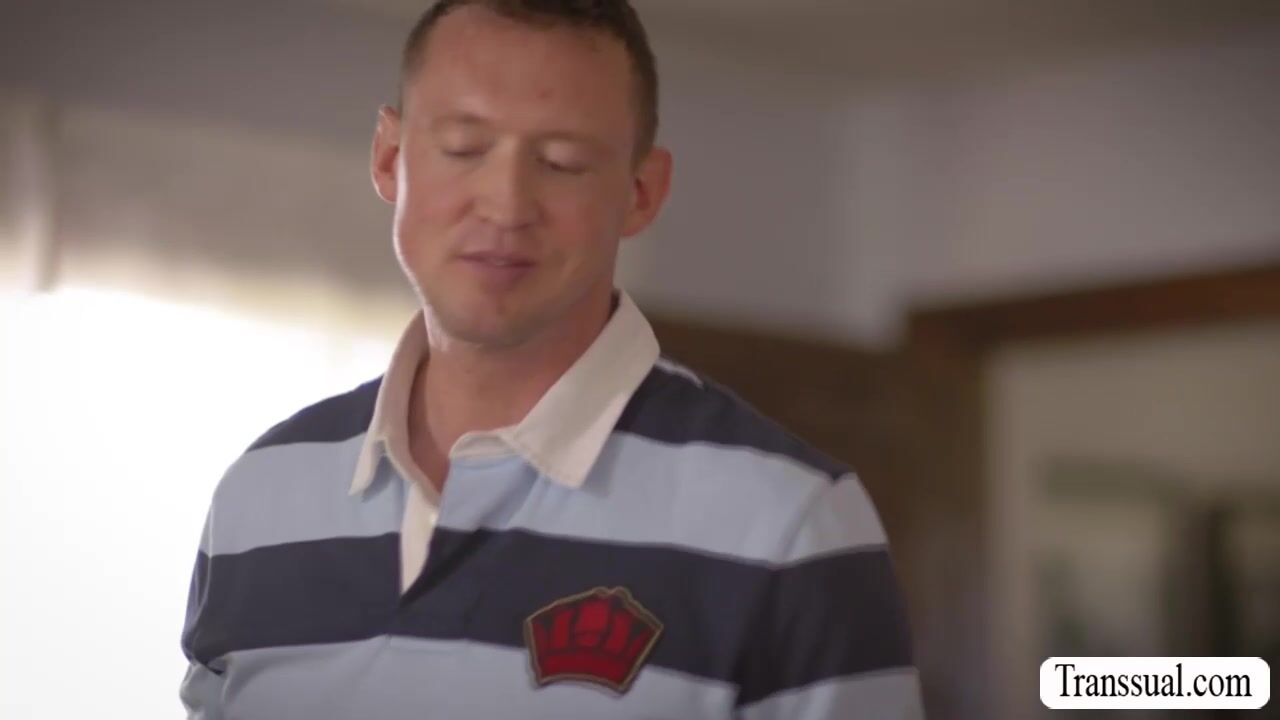 Stepbro goes to the room of his shemale stepsister and then they sit on her bed and start kissing each other.After that,they get naked and start sucking their big cocks passionately before they bareback fuck their wet asses so hard.