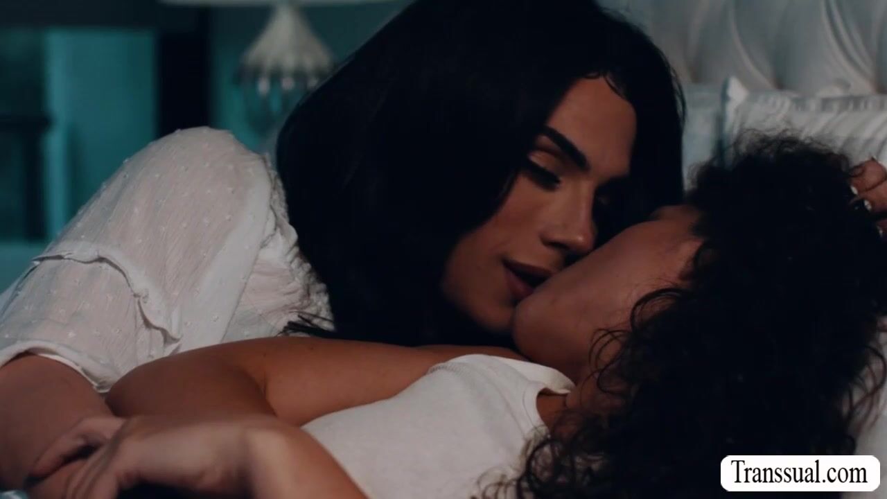 Curly haired stepdaughter and her shemale stepmommy are on the bed kissing each other.Next is,TS stepmom removes her stepdaughters short and licks her pussy after.In return,her stepteen suck her shecock and she then fucks her pussy after sucking.