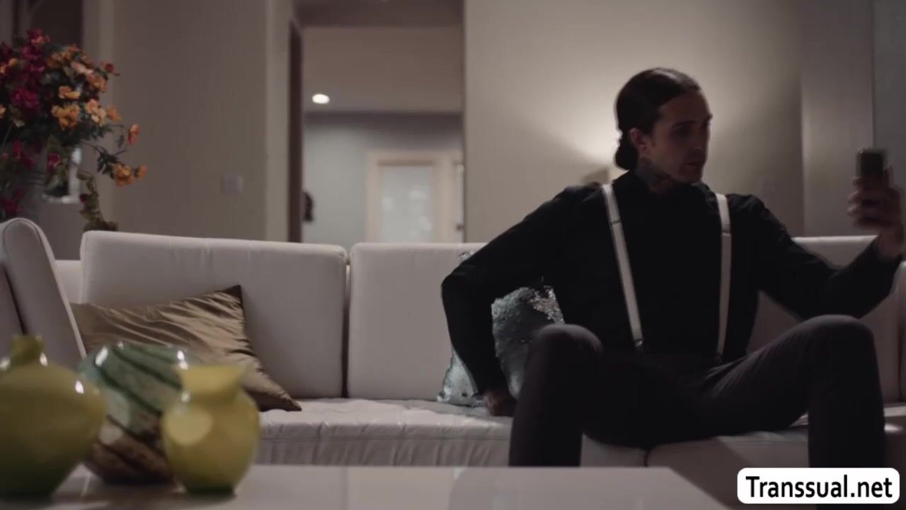 Slutty shemale gets bareback fucked by her tattooed boyfriend