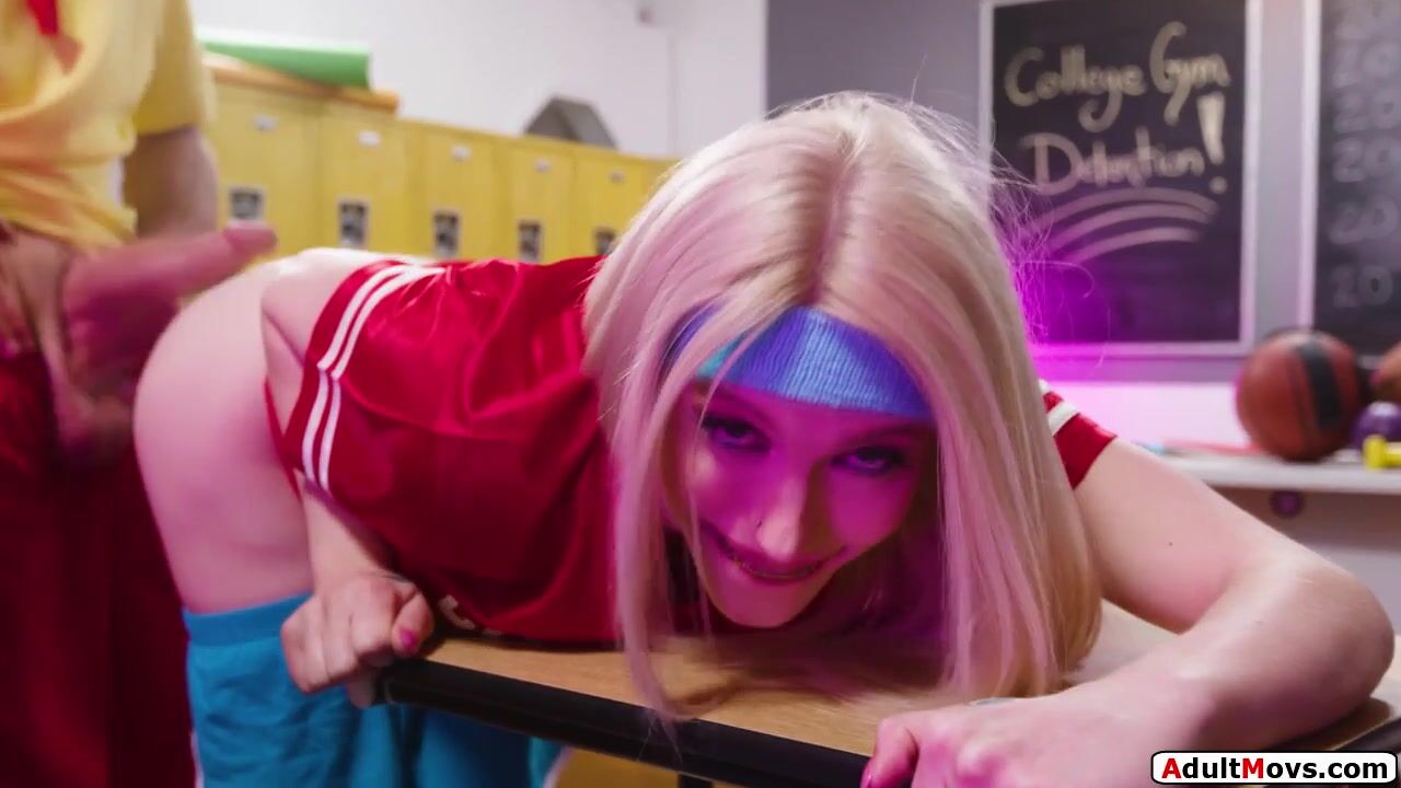 Busty shemale teacher Khloe Kay walks in on big tits coed tgirl Izzy Wilde getting fucked by her coach.The trans babes make him suck their tranny cocks.Ts Khloe is sucked off while Izzy is anal fucked.She barebacks Khloe while assfucked by the coach