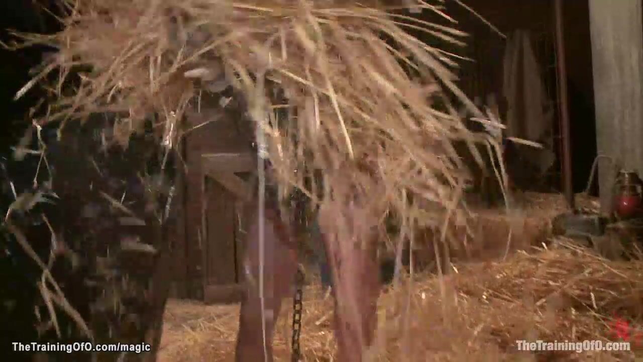 Blonde trainee with big tits Penny Pax is bound on the ground with anal hook bound to bucket full of rocks gets whipped then anal fucked by huge cock gimp Owen Gray