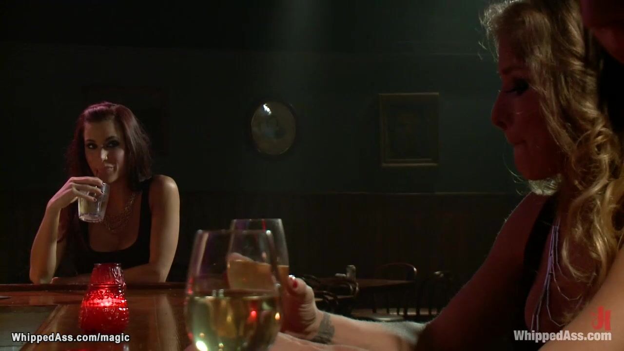 Lesbian girlfriends Felony and Katharine Cane picked up hot stranger Gia DiMarco in bar and brought her home where whipped and fucked in threesome bondage
