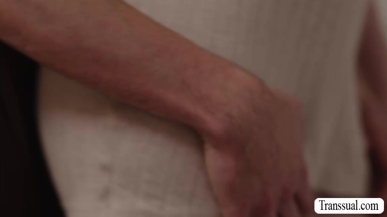 Shemale blonde wants to order new bed for her master bed room.After that,she gets horny and starts kissing the delivery guy and she then throats his hard big cock passionately.Next is,she bareback fucks his tight ass so deep and hard.