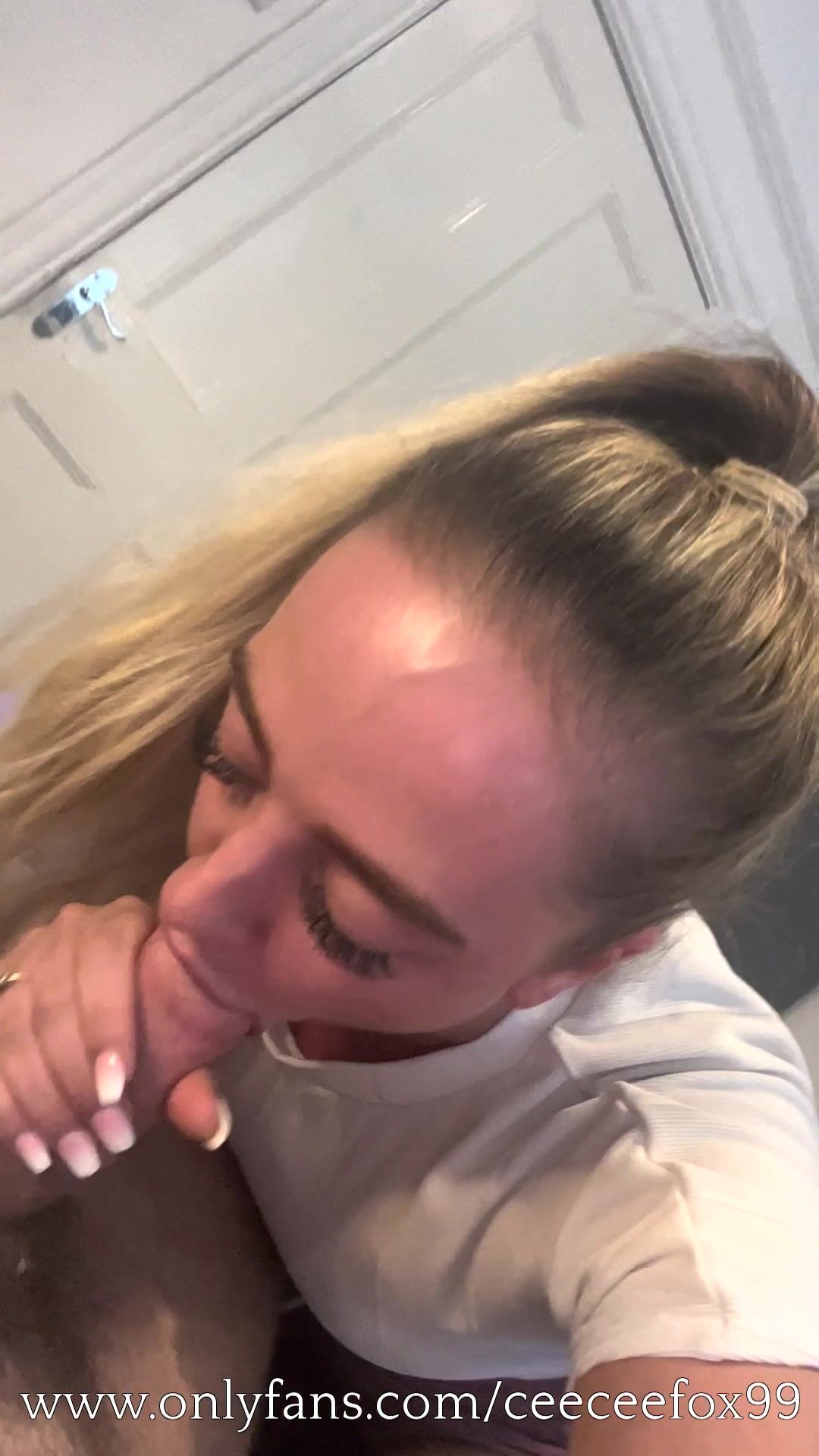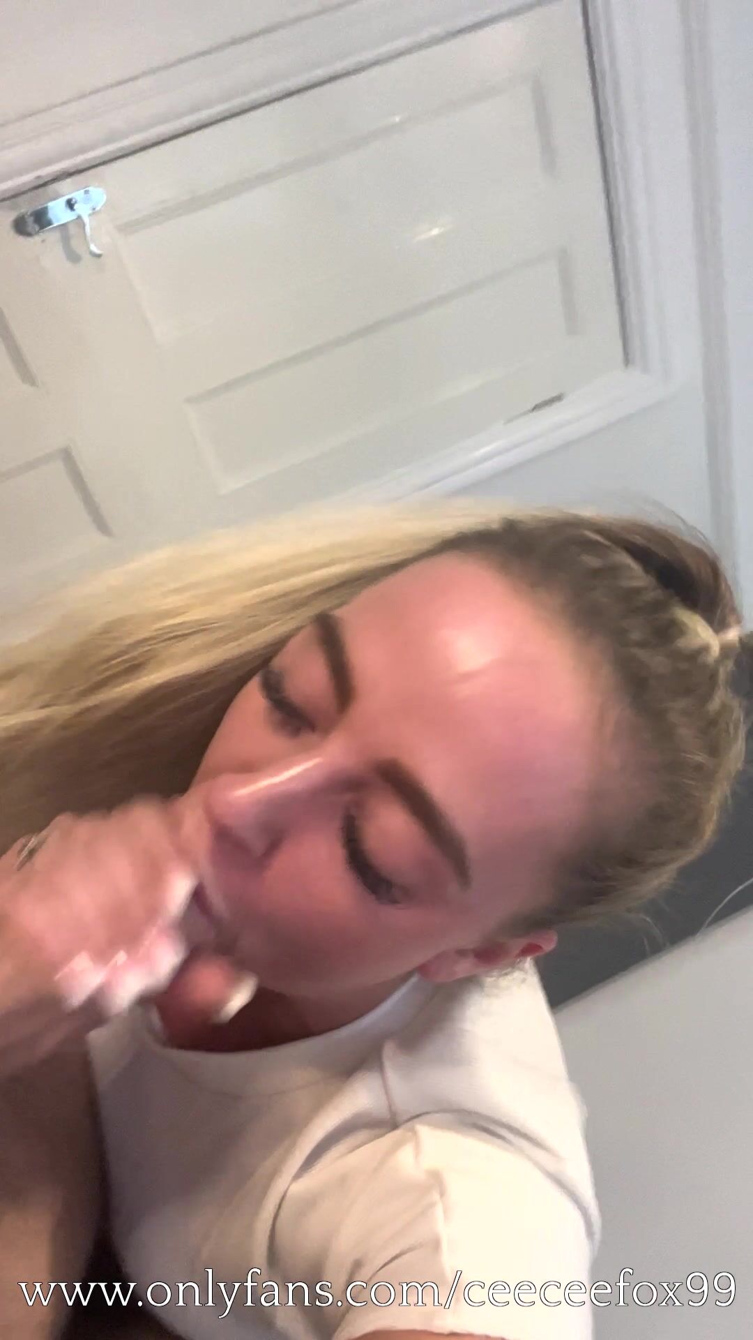 Blonde Girl Blows on Big Dick in bed and takes facial
