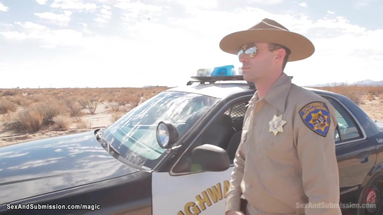 Sheriff James Deen pulled over two college students Casey Calvert and Lyla Storm in the desert and then binds them and anal fucks with big cock