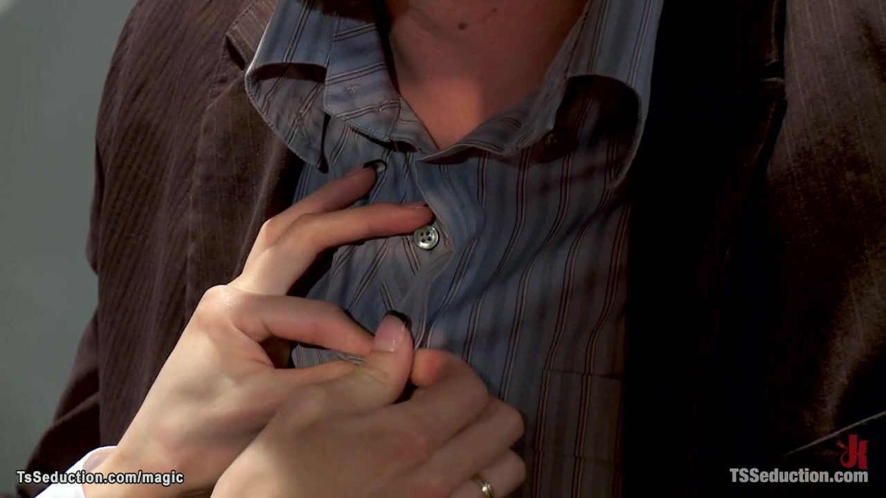 Blonde shemale student Paris A kissing her professor Rom Fox then laying him on back on the desk and anal fucking till he cumming in classroom