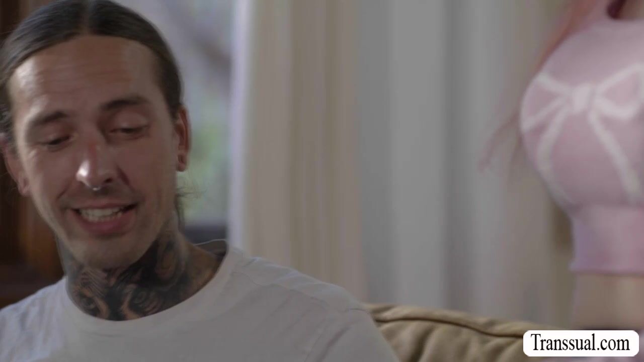 Handsome dude cant resist the big ass of his shemale stepsister.He lets her pull out her shecock and he then throat it passionately.In return,she throats his stepbros big cock too and lets him bareback her tight ass so deep and hard.