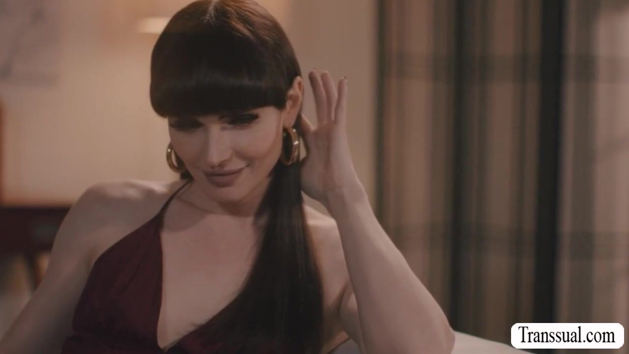 Pale skin shemale and her busty friend are on the couch kissing each other.Next is,she lets her friend throat her hard tranny cock passionately.In return,she licks her pussy first to makes it wet and fucks it so deep and hard.