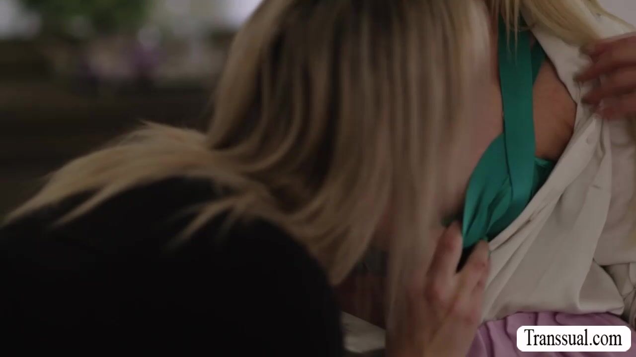 Busty house agent tours her shemale client into the house masters bedroom.After that,they get horny and start kissing each other over there.Next is,she lets her TS client lick her pussy first before she lets her fuck it so deep and hard.