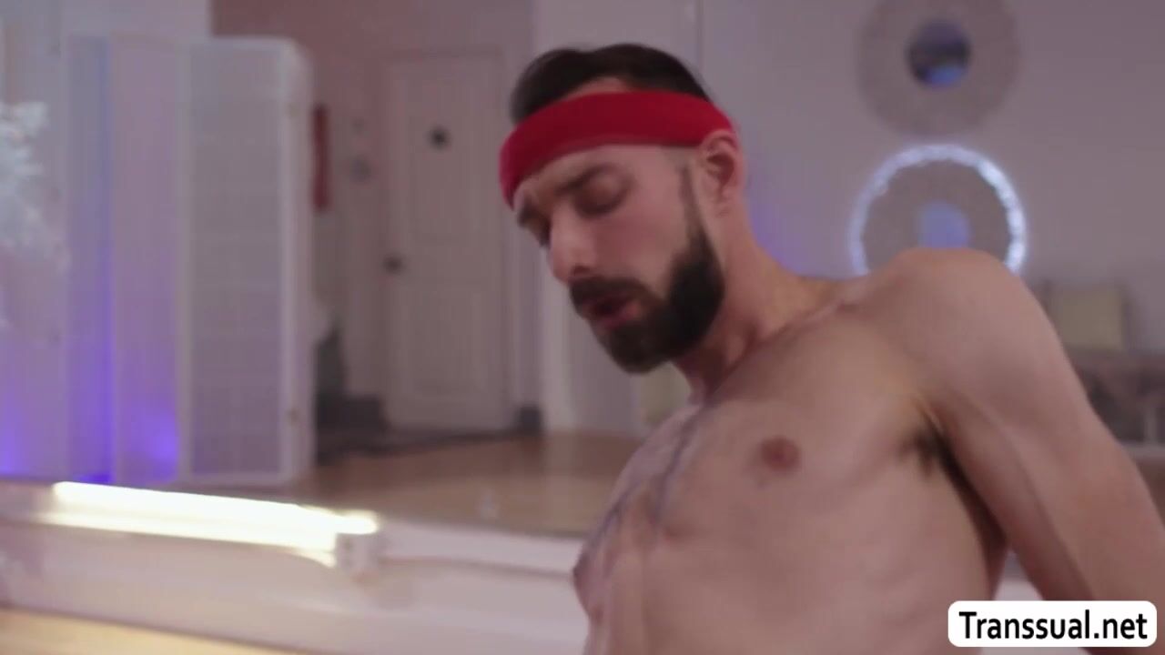 Lovely Tbabe is doing her yoga session and then a guy joins her.After that,they get horny and start kissing each other and she lets him throat her tranny cock passionately.In return,she licks his ass first before she bareback fucks it so hard.
