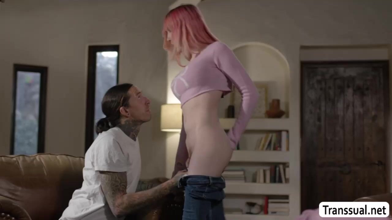 Stepbro is on the couch reading books and suddenly his TS stepsister arrives and bend over in front of him.He cant resist her ass so he makes a move and then they start kissing each other before he fucks her tight ass so deep and hard.