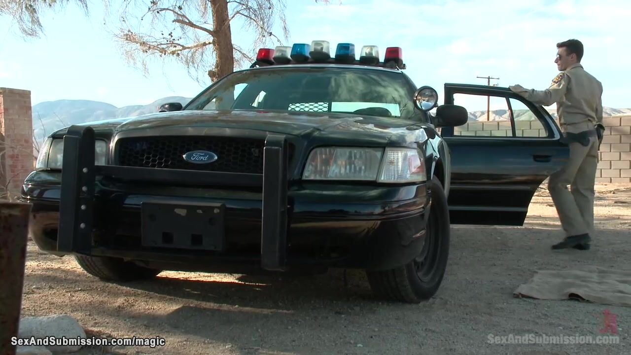 Fake sheriff James Deen arrests two hot wild students on the road Casey Calvert and Lyla Storm and binds and anal fucks them with big cock outdoor